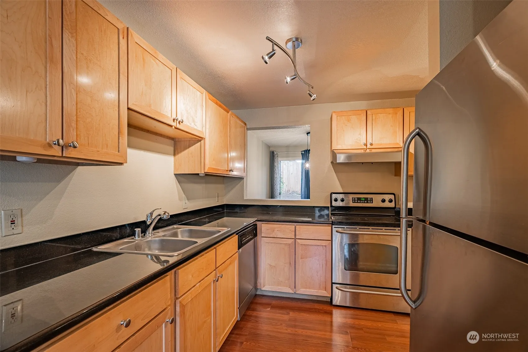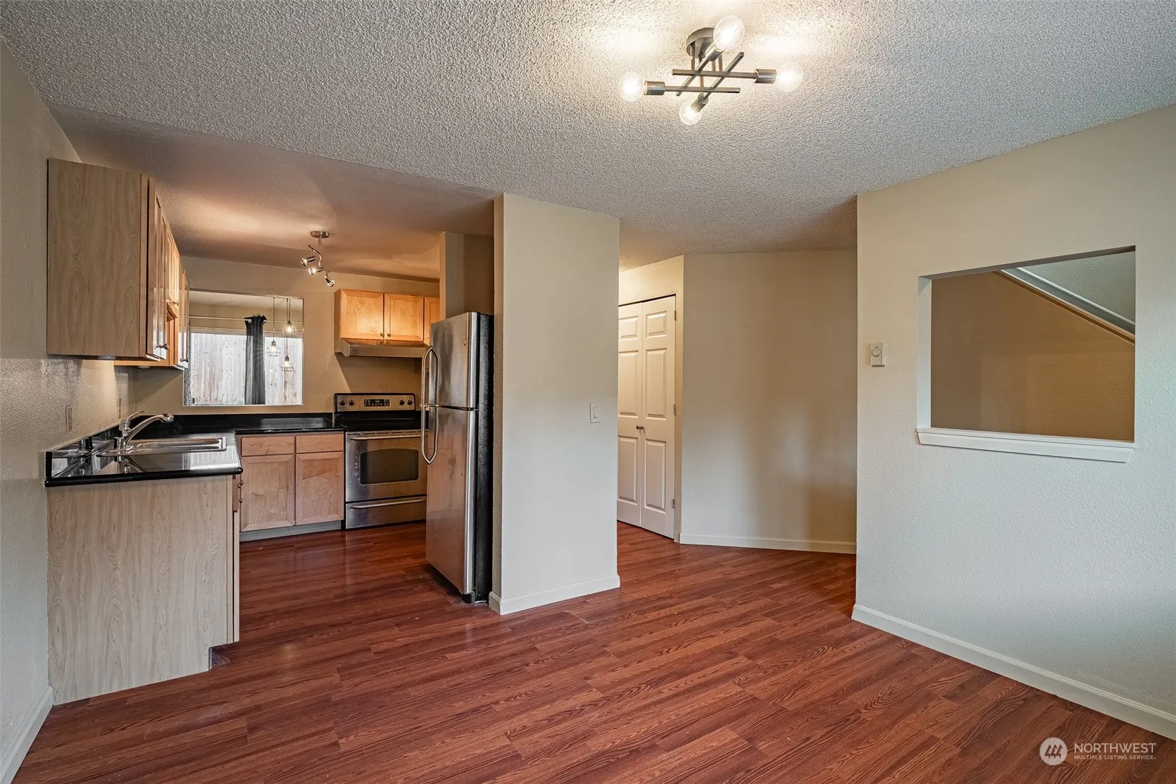 This charming condo offers the perfect blend of comfort and space. Step inside and unwind. Stainless steel appliances, granite countertops, and gleaming wood-plank flooring greet you, complemented by freshly painted walls throughout. Enjoy the ease of condo living while still benefiting from a sense of community. The complex boasts a sparkling pool, a well-equipped gym, a playground for the youngsters, and a welcoming clubhouse – all perfect for connecting with neighbors. Location, Location, Location! This condo puts you at the center of it all. Enjoy easy access to I-5 for quick commutes, nearby grocery stores and restaurants for everyday needs, and even the waterfront for a taste of the outdoors.