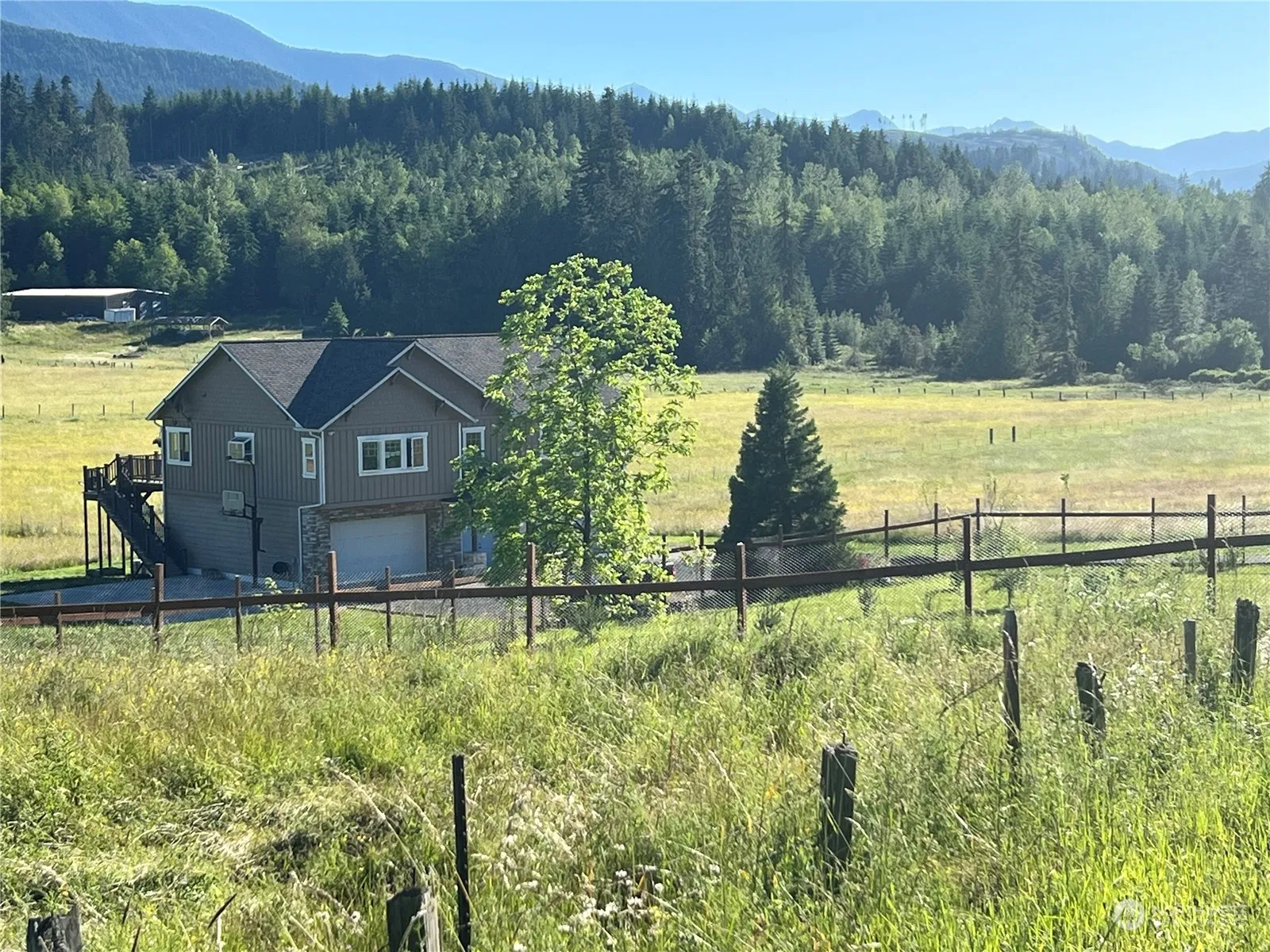 A great location to settle in and enjoy the views, the quiet and pristine beauty of the Olympics in your backyard. Spacious home with so many options, so many windows offering light and a gentle breeze flowing throughout. Home enjoys a great room with kitchen, dining area and living, all acing the south with a large easily accessed deck for entertaining and expanding your living area to include the outdoors, possibly watching your horses grazing the plentiful grass. So many riding areas near without trailering could certainly be an asset. Or maybe you want to live off the beaten path Starlink intenet conveys.