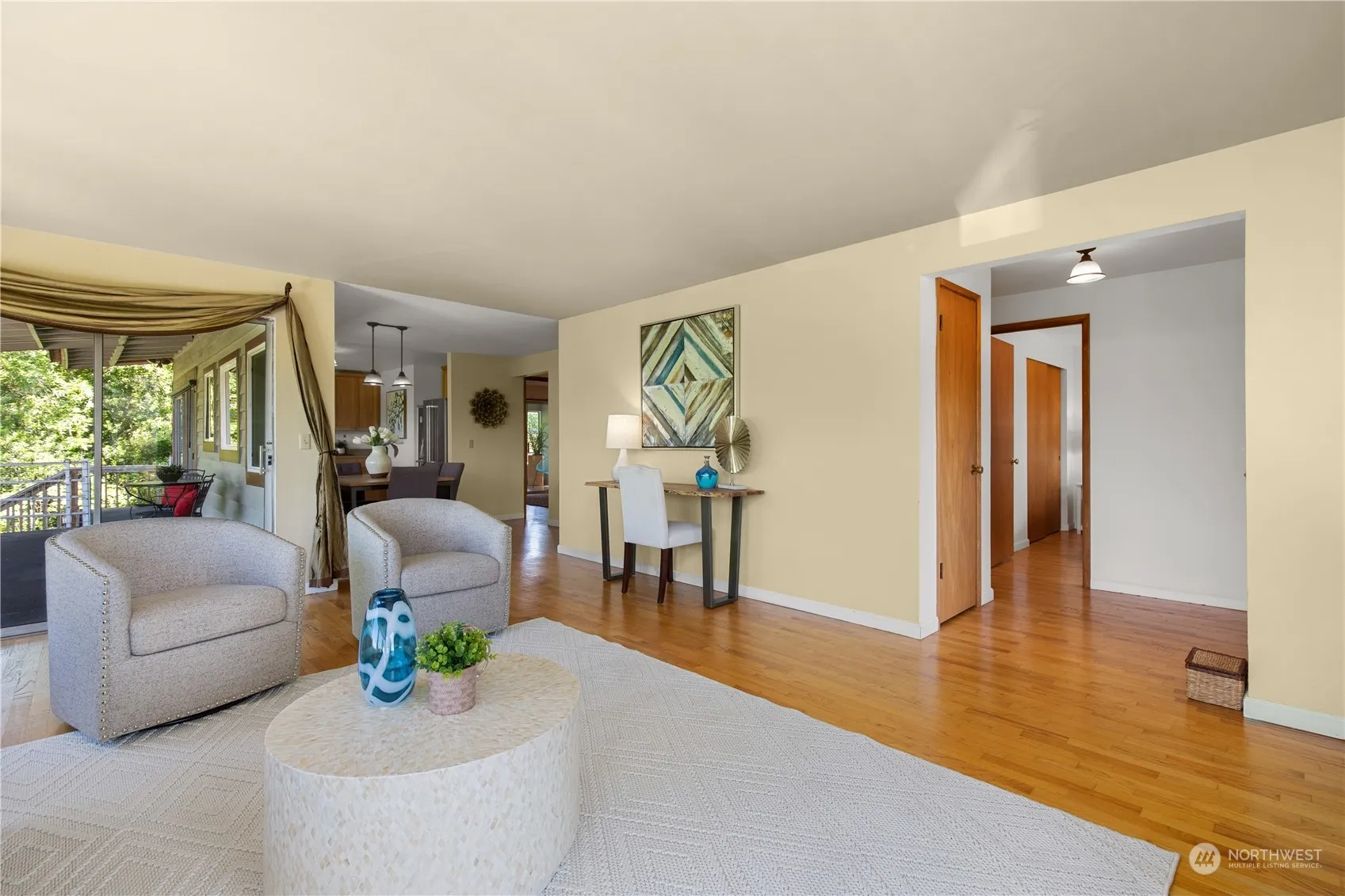 Experience the charm of East Seattle in this 2251 sq ft home on an 11,590 sq ft lot. The updated kitchen with stainless steel appliances, limestone countertops, and ample cabinetry opens to a spacious family room with a cozy fireplace. Three well-sized bedrooms and 2.5 baths ensure comfort and privacy. The primary bedroom features a wall of closets, hardwood floors, and an enclosed sunroom for relaxing. Enjoy seamless indoor-outdoor living with a large deck and flexible daylight basement. Extra storage with a three-car garage, RV/boat parking, and garden spaces. Close to Lid Park, “the Center”, and local amenities. West-facing views bring in natural light and stunning sunsets. Don’t miss this peaceful escape with city advantages.