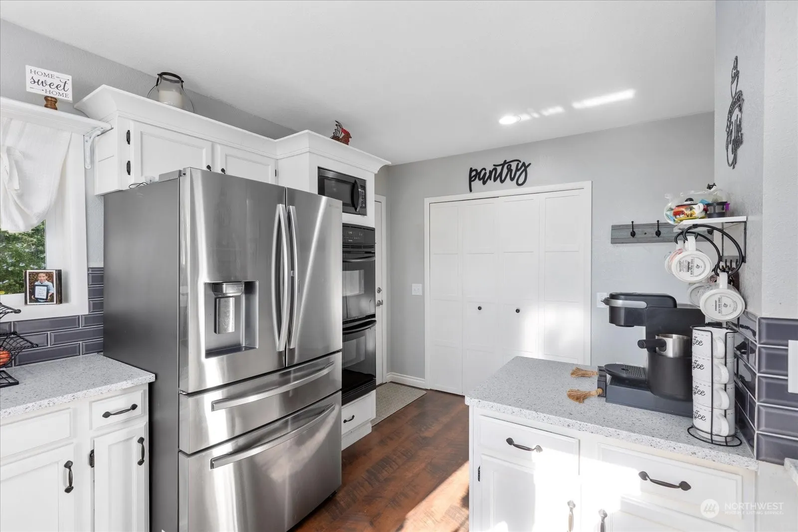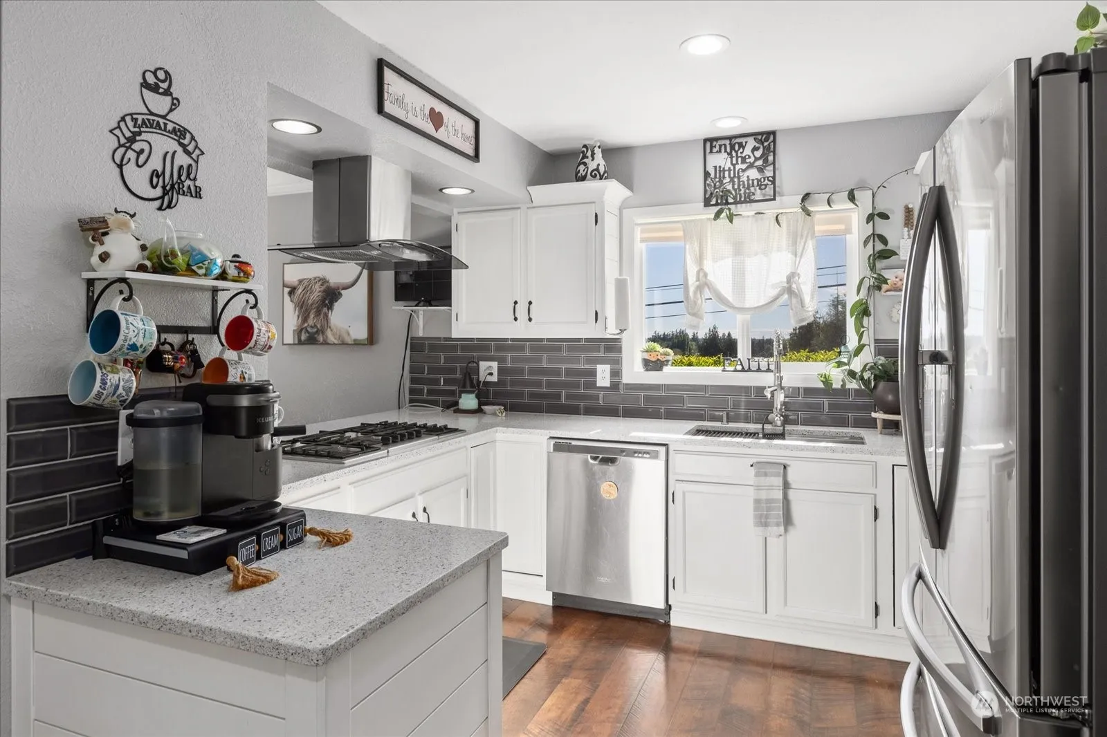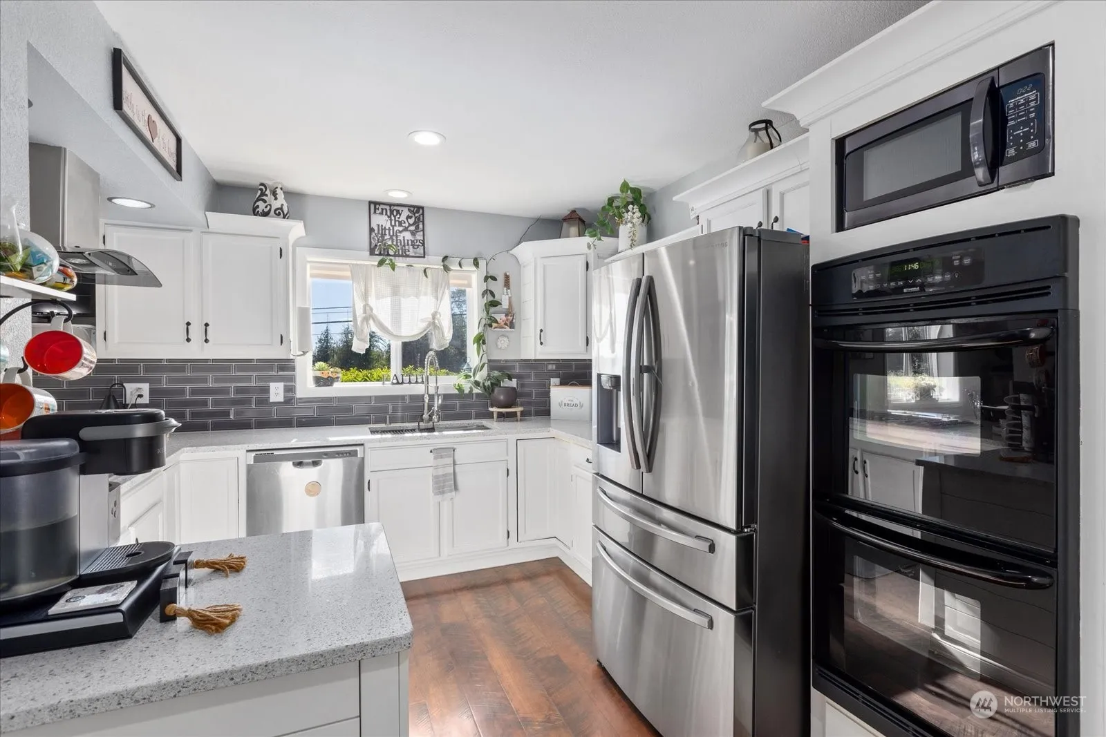 Idillic Country Living on shy 5 acres. A classic covered porch and mature landscaping welcome you to this beautifully updated open concept farmhouse with metal roof. Newly refreshed kitchen with granite counters, stainless appliances & tile backsplash opens up to a spacious dining area & adjoining living room. Main floor primary suite with attached remodeled bathroom and walk in closet. Two bedrooms up & one down. The large basement is perfect for a theater room, hobbies or office space. Large shop with 8,000 watt solar panel system, two metal sided barns for storage, chickens or livestock. Rv parking with second septic. Fenced pastures. Shaded fire-pit area, ready for summer entertaining! Less than 20 minutes to Bellingham.