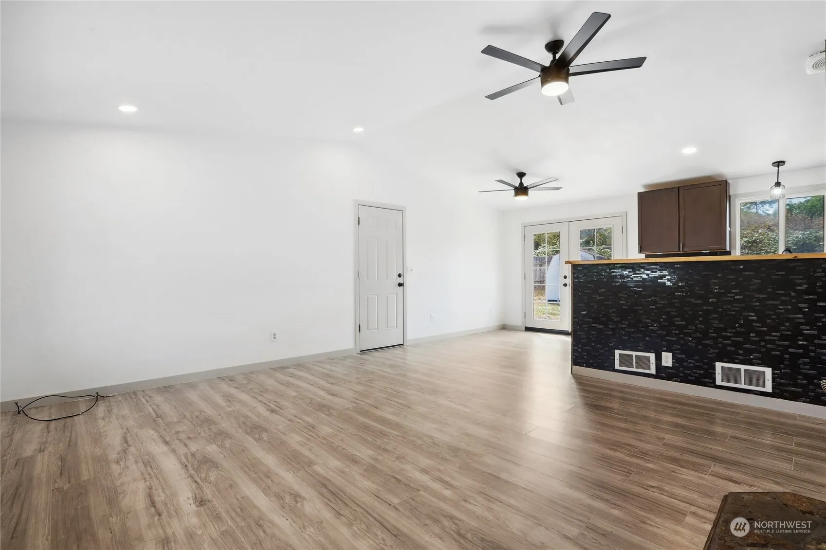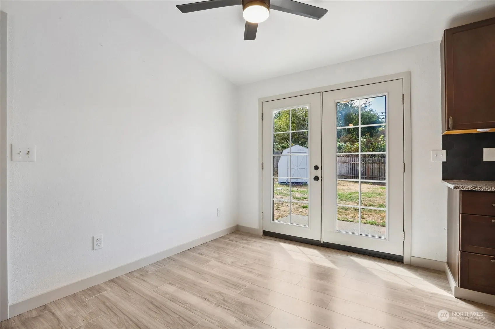 Discover this charming three-bedroom rambler in the sought-after Northgate Terrace community! The open-concept living area, featuring a vaulted ceiling, invites you into a warm and cozy living room with a wood stove, a dining space, and a beautifully updated kitchen. The home boasts three well-appointed bedrooms and a stylishly renovated full bathroom. French doors lead to a large, fully fenced backyard with a patio perfect for entertaining and two convenient sheds. With a one-car garage, additional driveway parking, and close proximity to State Rte 20 and NAS Whidbey, this home is a perfect find!