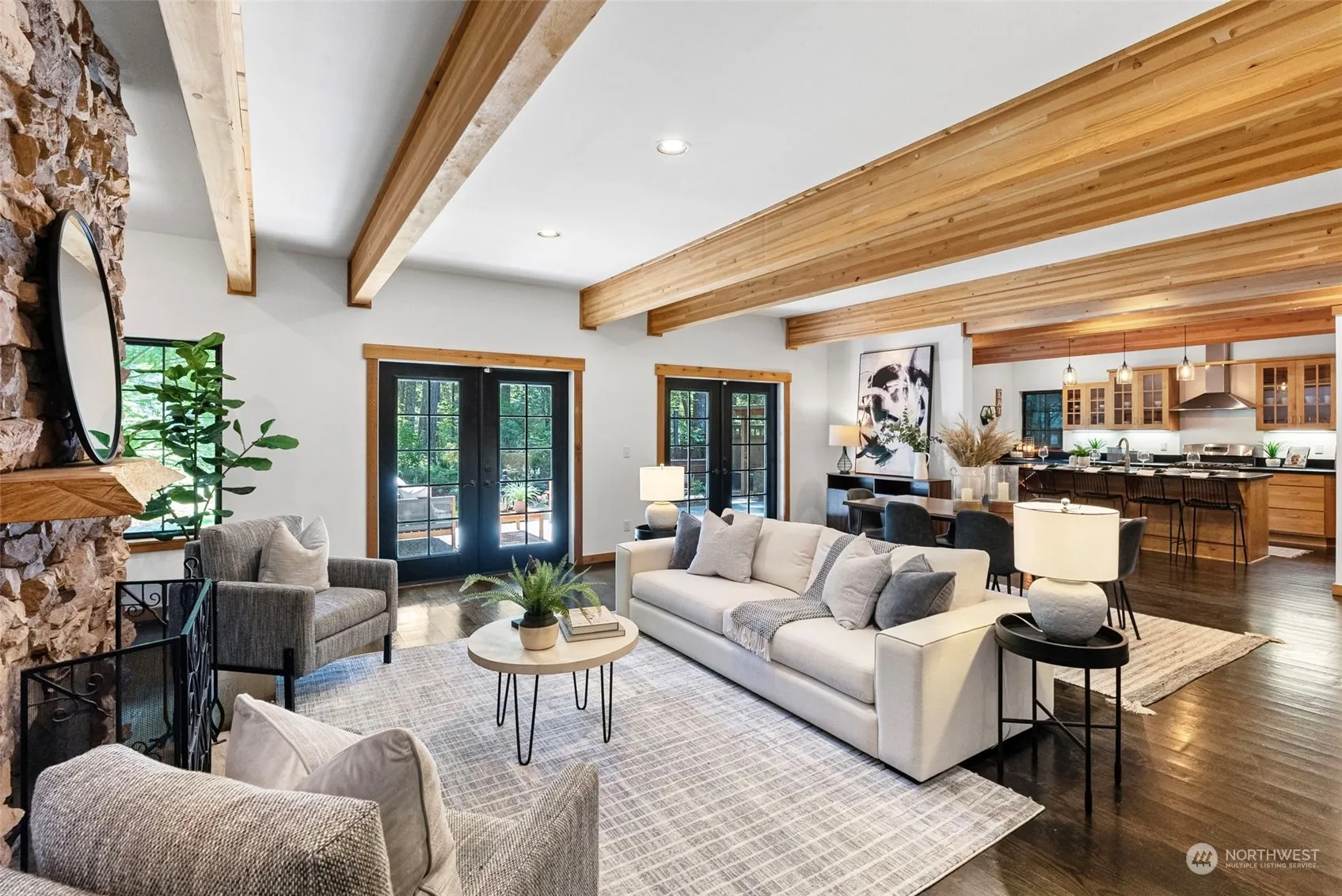 Welcome to the Snoqualmie River Retreat – a stunning, lodge-style home sitting along 90 feet of river frontage. This tranquil escape features a cozy, wood-burning stone fireplace, open floorplan & a modern, spacious Chef’s kitchen. The timeless style & expansive space of the indoors flow seamlessly to the natural beauty of the outdoors, onto the expansive decks, patio areas & trails. Entertaining is a breeze w/ the natural gas outdoor BBQ space! Enjoy peace of mind w/ an automatic generator & newer AC/Furnace. Wake up to the sounds of the river & stunning views from the upstairs bedrooms & second deck space. Just minutes from downtown North Bend & the Mount Si trailhead, offering luxury living w/ easy access to endless outdoor activities.