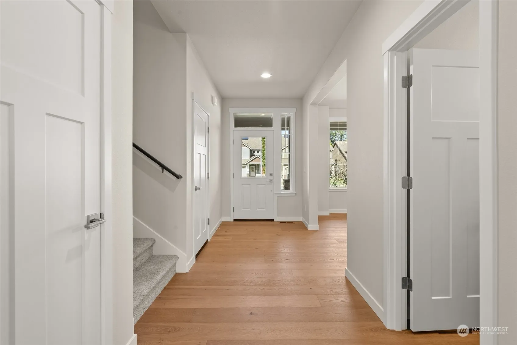 The Rainier plan offers 3 bedrooms + oversized bonus room and 2.5 baths. Enjoy contemporary details, hardwood flooring, Graphite stained maple cabinets throughout w/full extension guides & soft closure drawers. Quartz counter tops, double oven range & fully landscaped front & back with privacy fencing. New energy-efficient features include high-efficiency 5-stage heat pump with wifi thermostat providing both heat and air-conditioning, a high-efficiency Carrier electric forced-air furnace, solar panels & an Electric hybrid water heater. This home offers a coveted, 3 car garage w/remote too! Local Builder with 35+ years of experience.