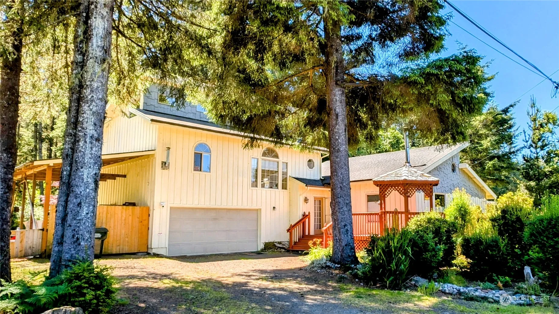 Let your imagination soar with this entrancing, unique custom home w/ mature landscaping, generous 120 x 120 lot. Mid-peninsula in desirable Tides West community w/ dedicated access to ocean & Loomis Lake w/ dock. Stunning light-filled great room, vaulted ceilings, wood beams, eat-in kitchen w/ butcher block counters. Spacious primary suite w/ walk-in closet & stand alone fireplace. 3 BD/ 2 – 3/4 baths, Lrg sun room + utility craft room. Divided open concept living offers expansive space for friends; perfect for multi-generational living. LRG private backyard w/ patio, gazebo & 2 sheds. Dbl garage & carport & ample space to park an RV. Spark your creativity & luxuriate in coastal living at this unique versatile retreat.