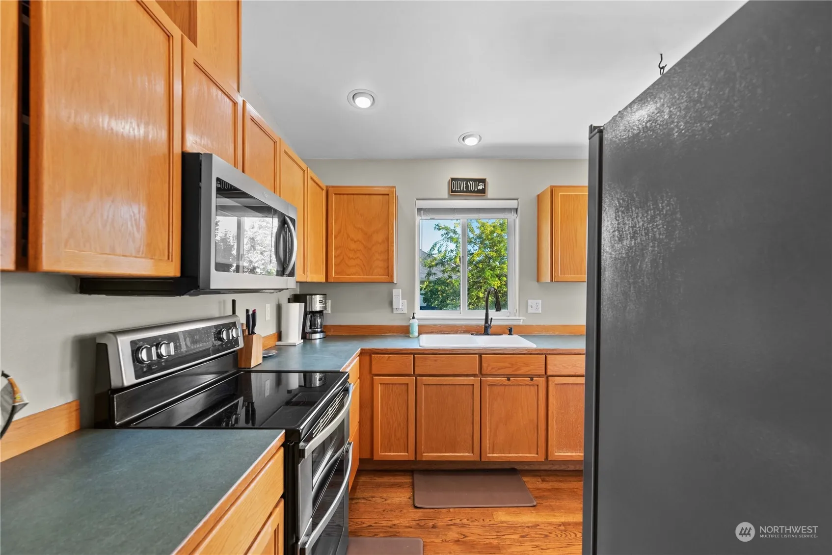 This charming 4 bedroom home has an attached one-bedroom ADU. It boasts attractive curb appeal with fresh paint & well-maintained landscaping. The main level welcomes you with a cozy TV area and a gas fireplace. The kitchen is bright and airy with a view of the spacious backyard. Upstairs, you’ll find 3 bedrooms and remodeled bathrooms with tile flooring & new vanities. The lower level features a family room, bed/bath & laundry. Easy access to the backyard which is perfect for entertaining on the patio. The attached ADU has its own outside and garage access. Built in 2021, it has everything you need, including a full kitchen & laundry. There’s ample parking, and it’s conveniently located near town. This is an opportunity not to be missed!