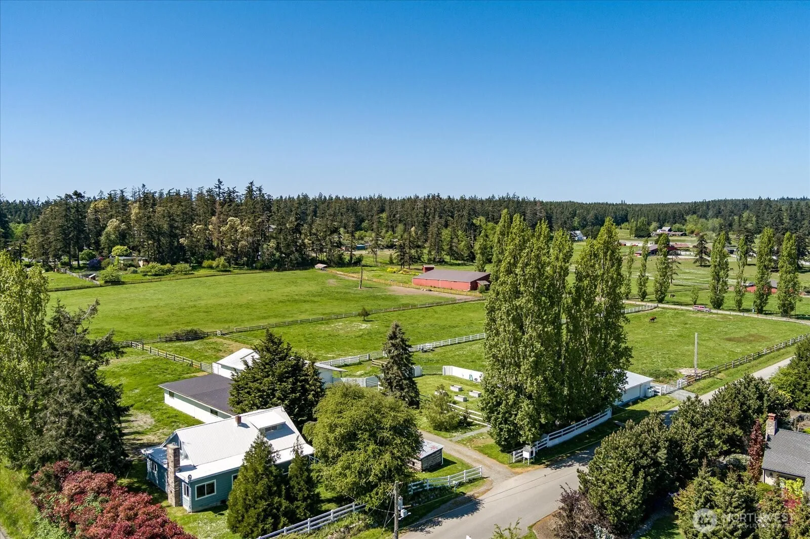 Discover farmhouse charm & income potential on 5 level equestrian acres just minutes from Mutiny Bay & Freeland shopping. This 2-bed, 1-bath main home exudes rustic warmth, while the detached 1-bed ADU offers rental income or guest space. The 5-stall barn, w/office, tack room, & rentable stalls, makes this a working farm, w/Trillium Woods access nearby. Both dwellings have new septic systems, & upgraded fencing secures property for horses. Both houses, barn & garage have undergone extensive upgrades during their remodel – thus making things up to today’s standards while maintaining the farmhouse allure. Just some of the updates incl electric, paint, roof, & appliances. It’s a rare blend of peaceful country living & profitable opportunity.