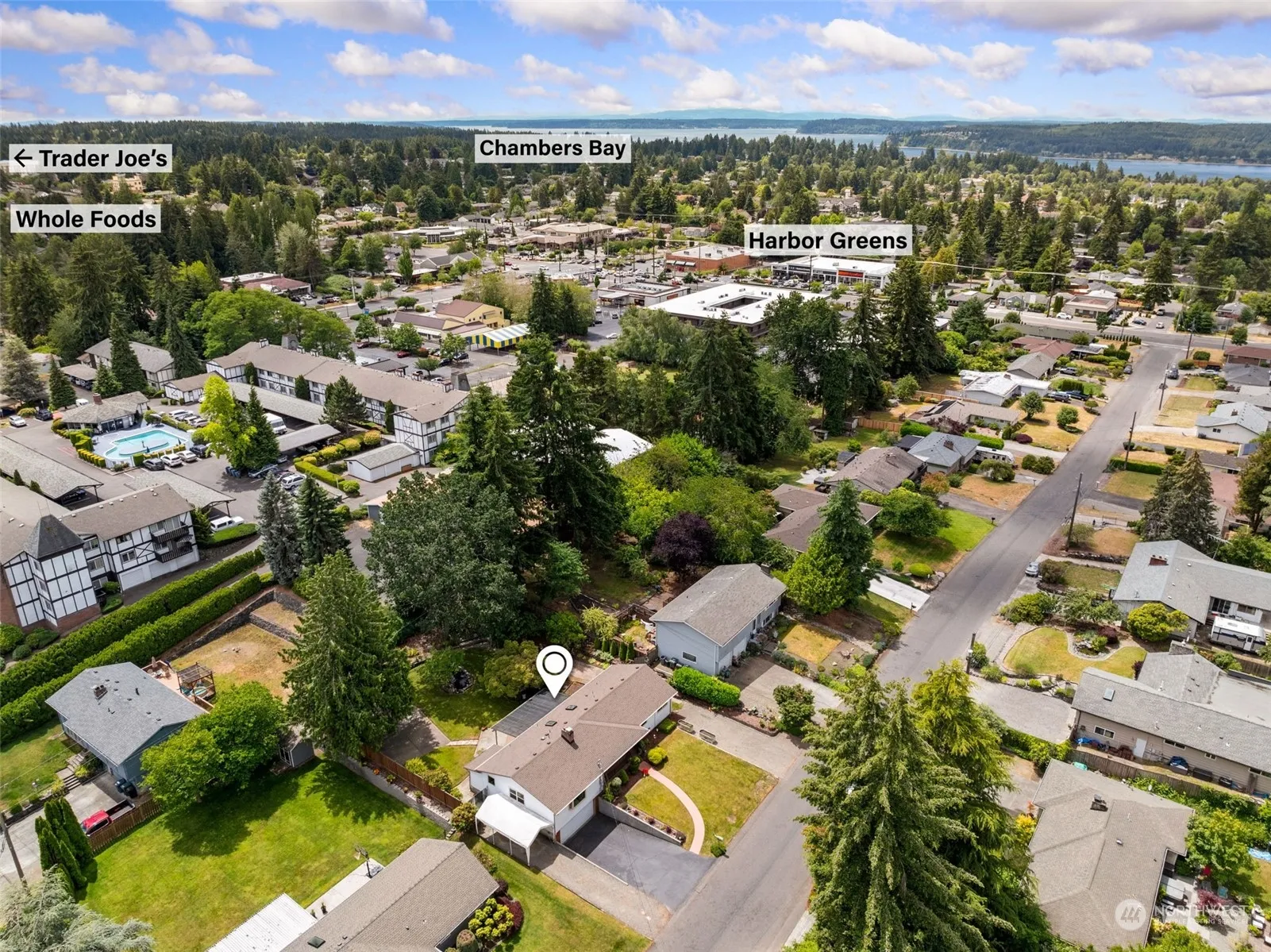 Escape to Tranquility: Your Home, Your Private Waterfall! Discover the essence of relaxed living in this delightful University Place Rambler. Entertain with ease in the expansive recreation room featuring a convenient wet bar, or step outside to a soothing waterfall cascading gently amidst beautifully landscaped surroundings. Ample parking includes an attached two-car garage, carport, and off-street options, ensuring plenty of space for vehicles, RV, and guest. Many recent improvements, enhancing both its functionality and aesthetic appeal. Located close to restaurants, shopping, and the stunning Chambers Bay. A home combining suburban peace with urban convenience. Charming home offering tranquility and comfort in one package!