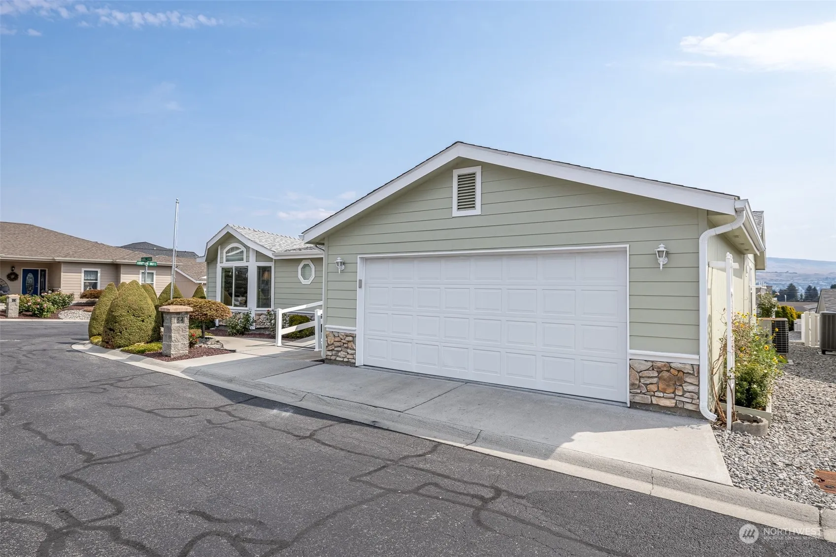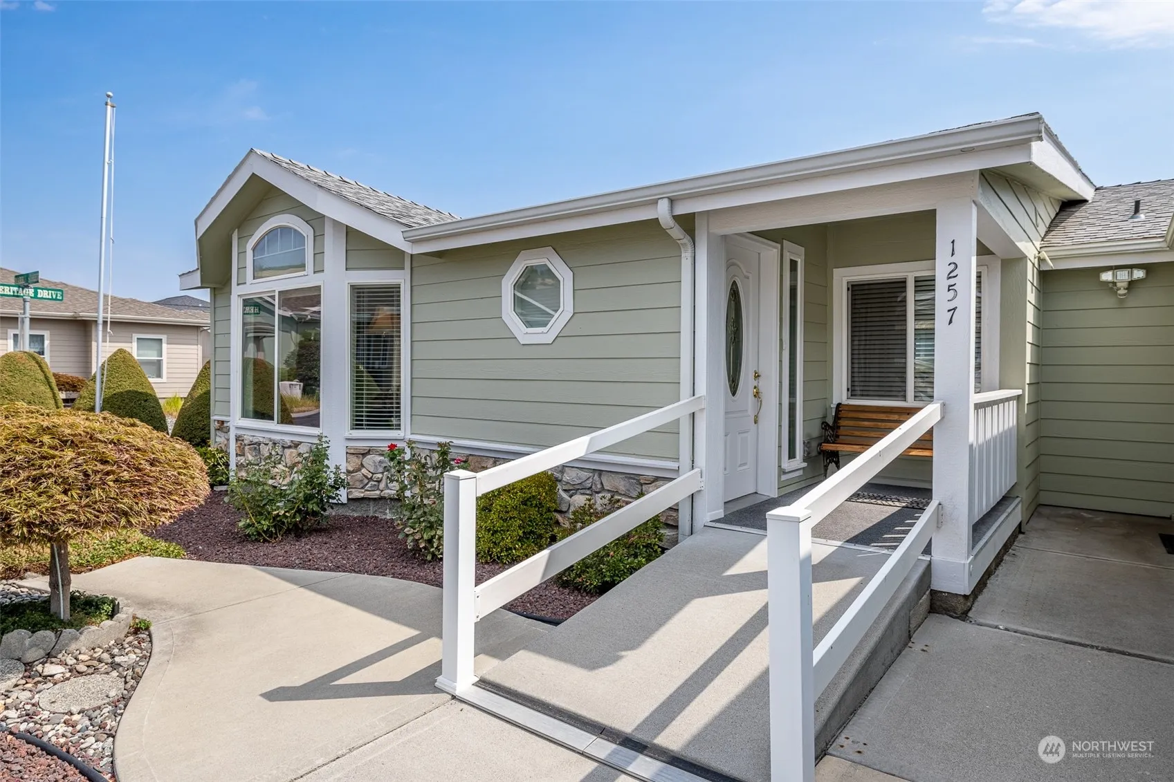 Easy care and easy one-level living in this immaculate home. Recently freshened-up interior paint makes it sparkle. Vaulted ceilings and lots of windows add to the light and bright feeling. Great room concept made for gathering times. Lots of storage in the spacious kitchen and throughout the home. Primary suite has an oversized closet and a 5-point bath, including a jetted step-in tub that is perfect for limited mobility. Nice sized garage with space for two cars plus a bench. Porch addition with extra space for relaxing and reflecting. Landscaped for minimal care and upkeep. Well-established community of 55+ folks and a wonderful place to make friends and share life or have your own retreat.