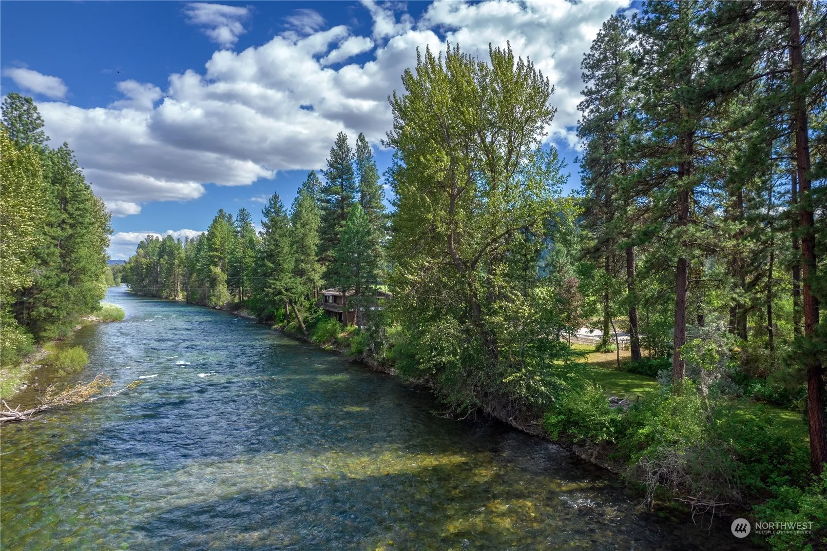 NO STRESS HERE! Let the soothing sounds of the Methow River create a peaceful environment as you relax on the deck or patio of this 2-bed, 3-bath home just off Wolf Creek Road. This beautifully landscaped and maintained 2.57 acre parklike property with over 1200 ft of low bank riverfront. Perfect for rafting, swimming or simply kicking back and taking in the warm breeze on a lazy summer afternoon. Features include a paved driveway, an established fenced garden area, wrap-around covered walkway, a garage with work space, and fruit trees. Ski and bike trails are throughout the Wolf Creek area, where you can endlessly recreate! Best of all…IT CAN BE YOURS.