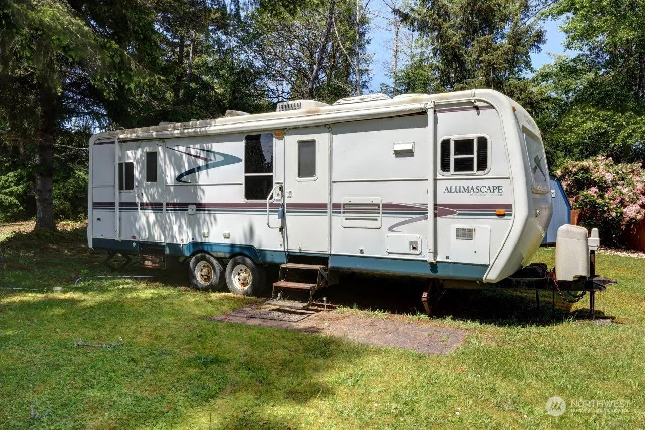 BEACH HOME SWEET HOME!! RV included so you can move in and sleep at the beach tonight! All utilities in place at this great location, out of the wind, storage shed for your beach gear, and room for friends! Store your RV here all year here! Manufactured homes are OK for future development. Beach trail is within walking distance.