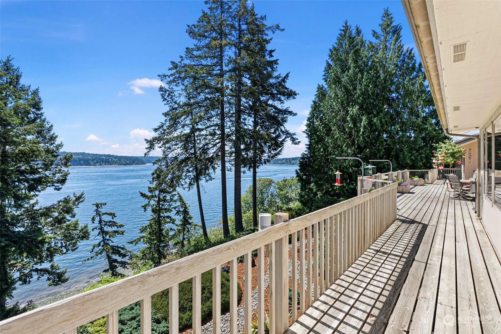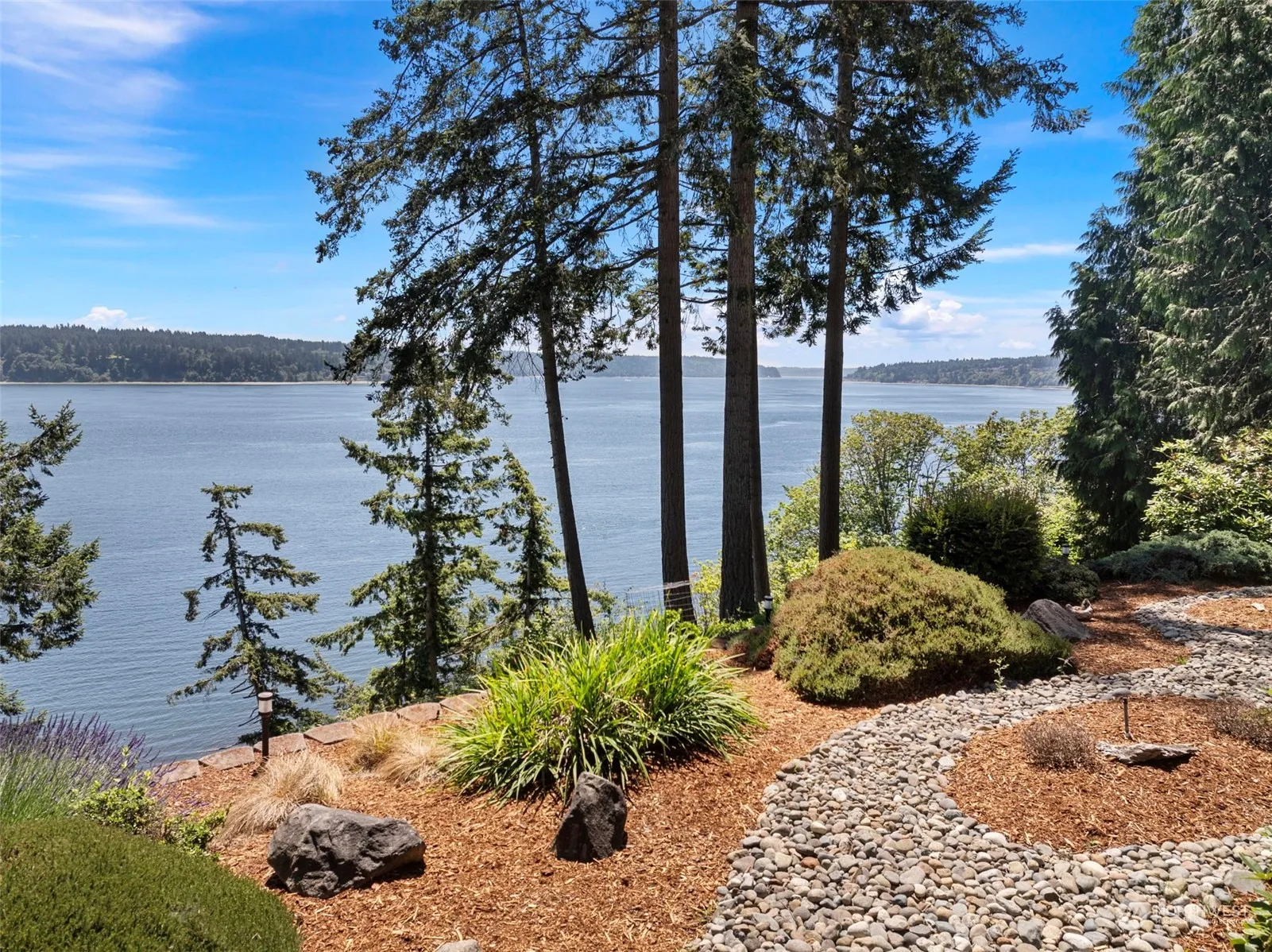 Quality exudes in this custom built high bank waterfront home nestled on a quiet dead end street in Seaview Terrace in Olalla. Take in the views of Colvos Passage from almost every room of the house and watch the bald eagles soar from their perch. The seller spared no expense in building and it shows! This home lives like a spacious rambler, yet you have a private bedroom, bathroom and family room downstairs. Huge kitchen with island, dining area and large living room with wall of windows and vaulted ceiling. Retreat to the primary suite with attached office with walls of bookshelves. Don’t miss the finished gym area, half bath with sauna, wine cellar in crawl space and huge workshop for the craft or hobbyist.