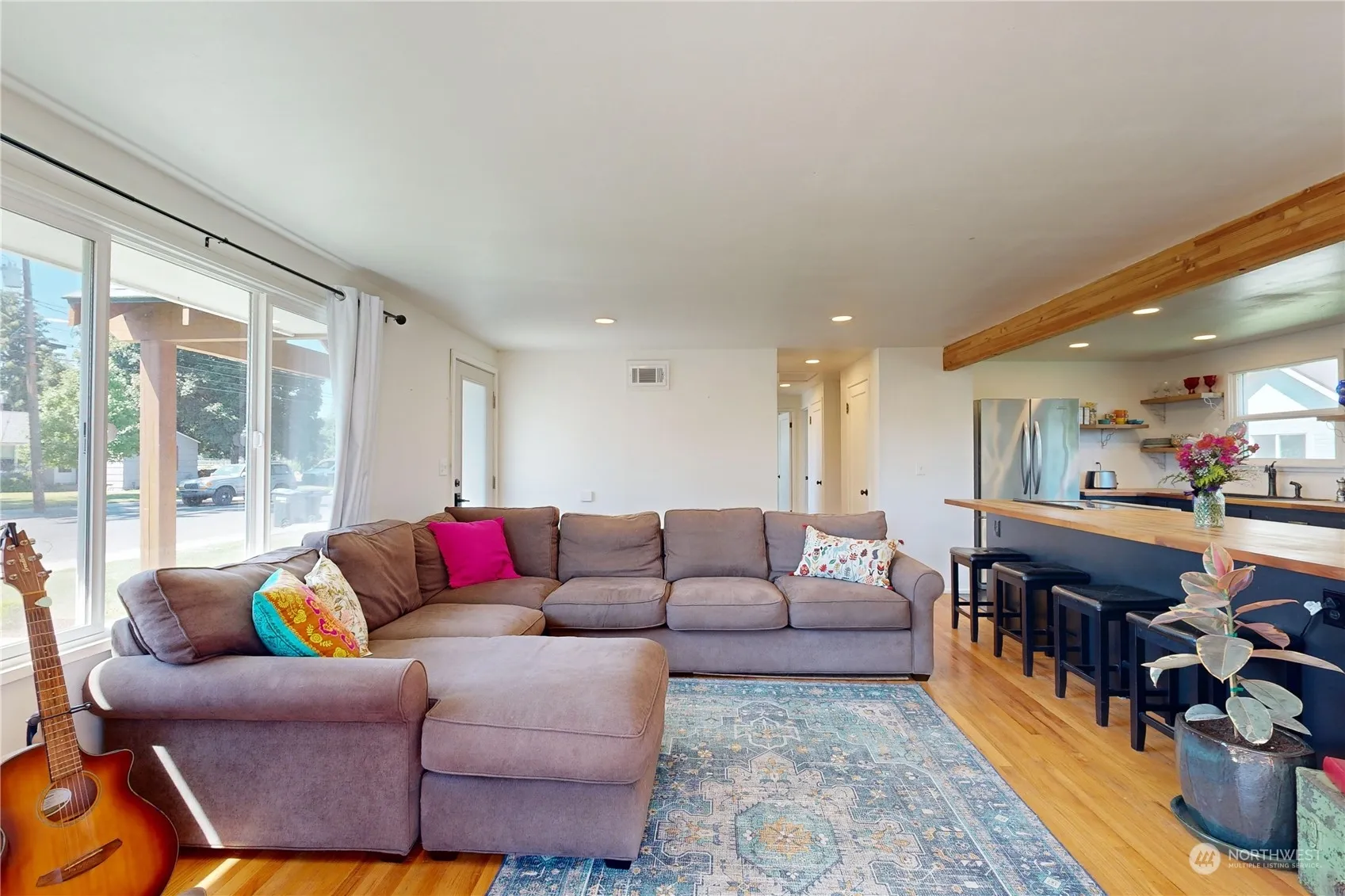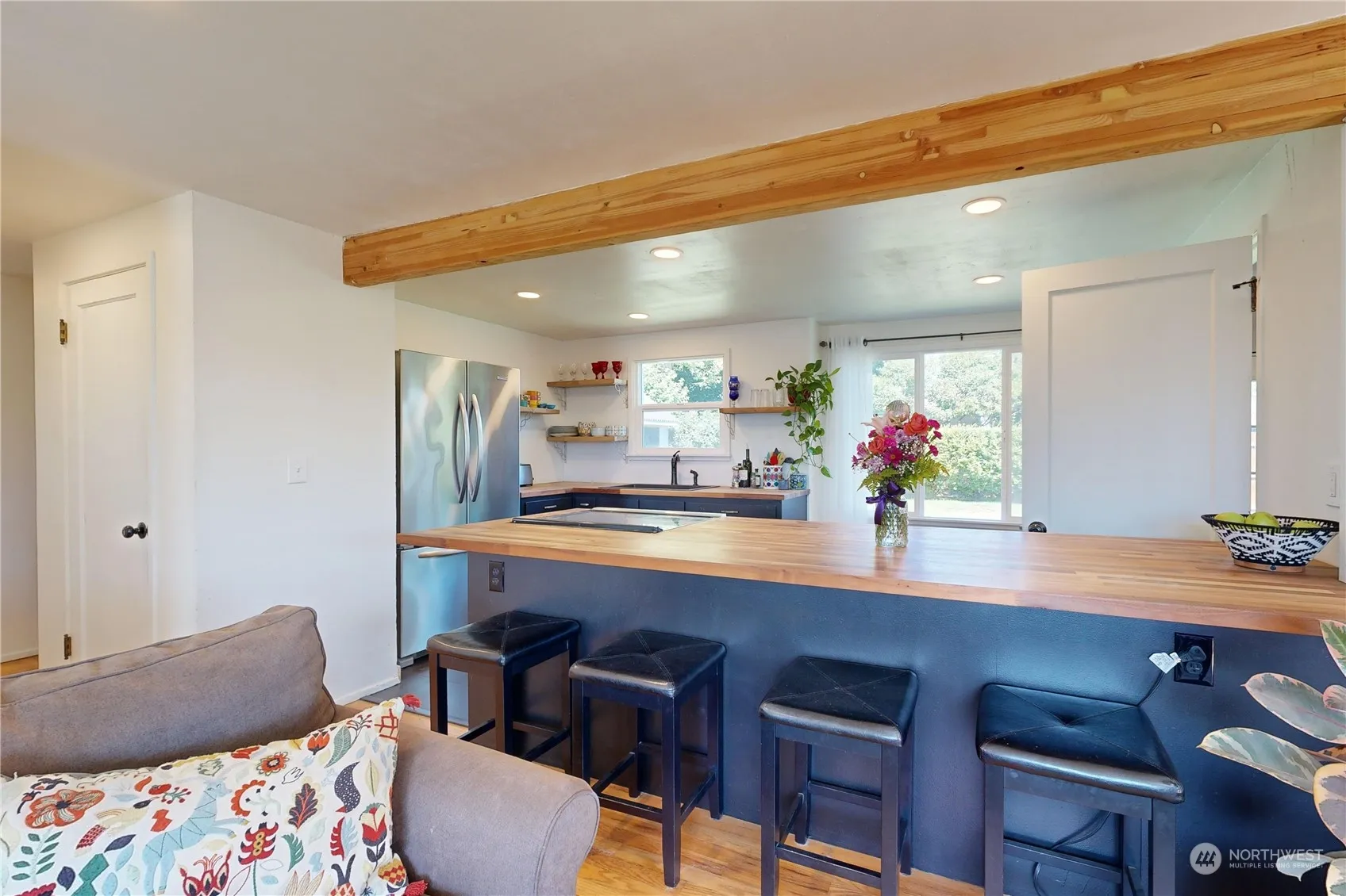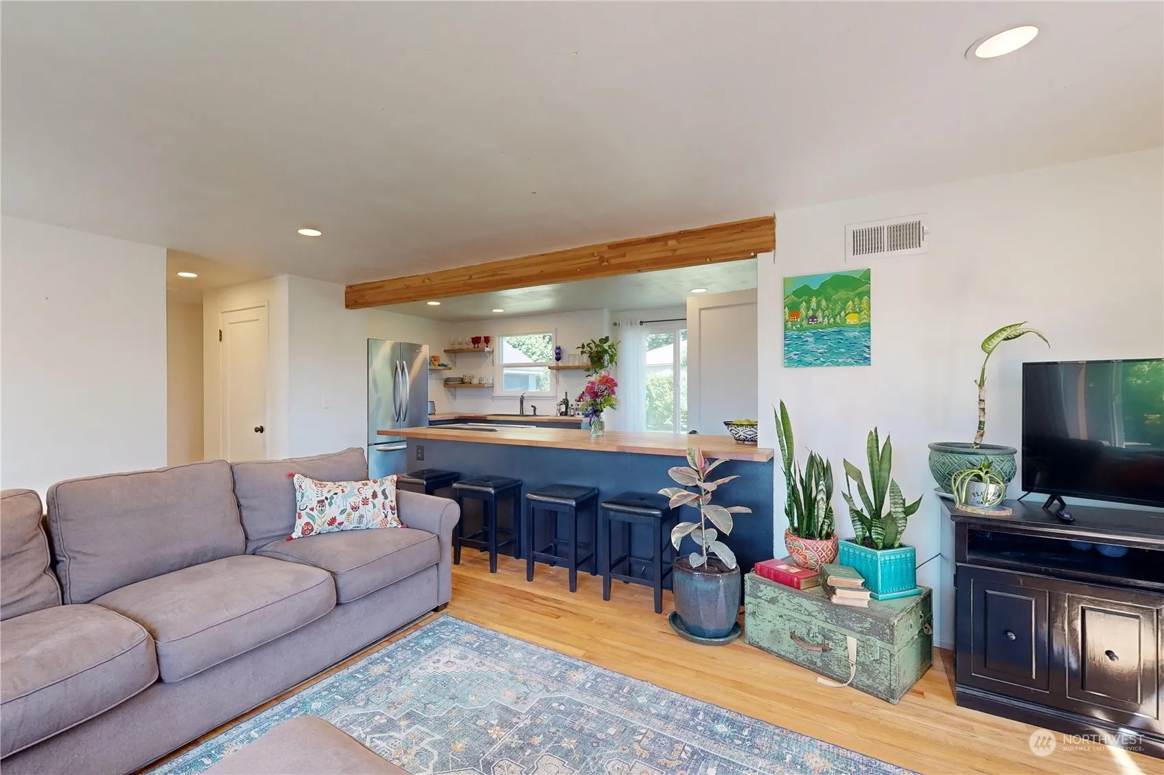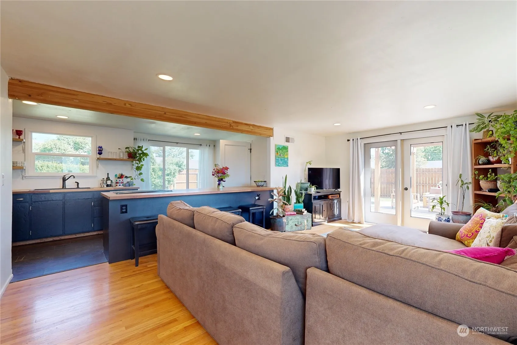 This charming single-level home has been remodeled & is ready for you to call it home! Enjoy gorgeous refinished hardwood floors, fresh paint throughout, updated bathroom w/ tiled floor/shower & vessel sink. The open floor plan is perfect for entertaining w/ a spacious kitchen, complete w/ butcher block counters, breakfast bar, new sink/faucet & stainless appliances. The french doors lead outside to a relaxing oasis… enjoy cozy nights under the pergola, or play in the large fully fenced backyard. A new shed provides extra storage space. All new windows, exterior doors, siding, ext. paint, concrete work, irrigation system, sod & landscaping, fencing, front porch, back patio, planter boxes, custom shutters & RV parking complete the package!