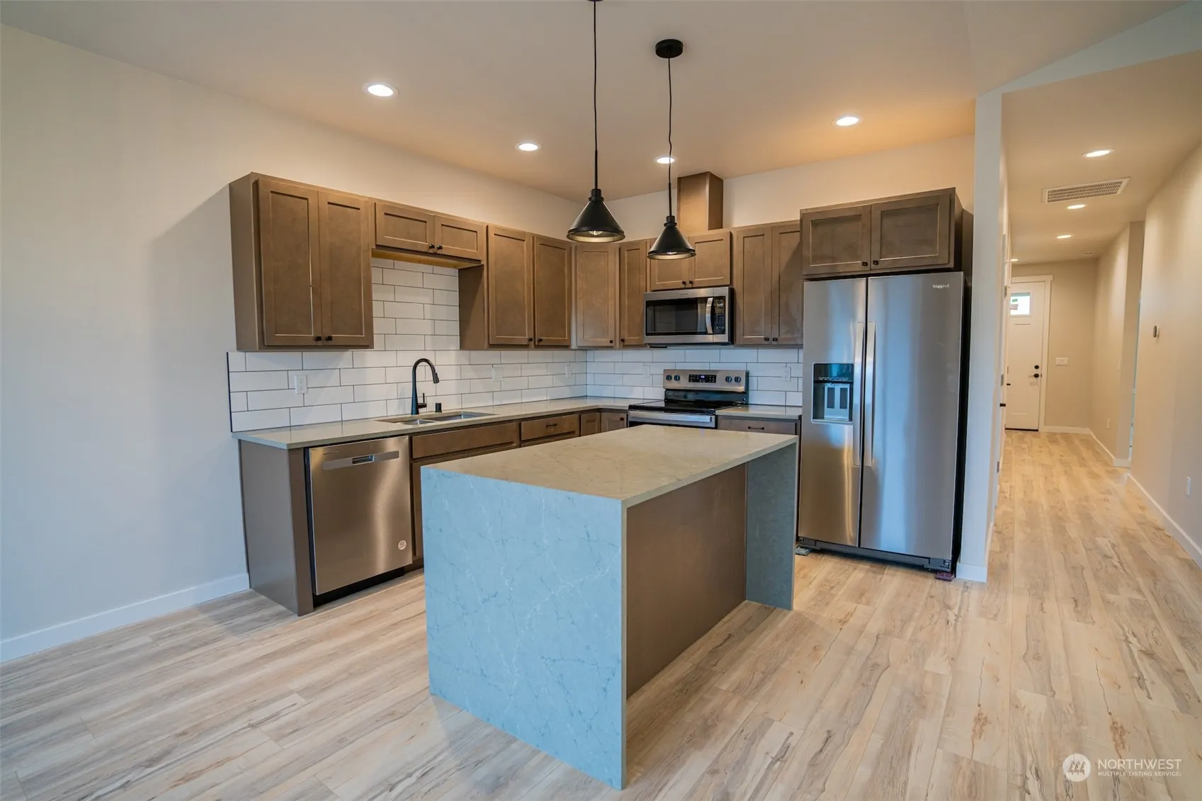 This stunning 3-bedroom, 2.5-bathroom home offers the perfect blend of comfort and style. Featuring soaring 9′ ceilings and an open-concept living and dining area, the space feels bright and inviting. The gourmet kitchen flows seamlessly into the living room, ideal for both entertaining and everyday living. Enjoy luxury bathrooms with a custom tile shower and a relaxing soaker bathtub. With spacious bedrooms and contemporary finishes throughout, this home is move-in ready. Don’t miss your chance to own this beautiful new construction—schedule your showing today!