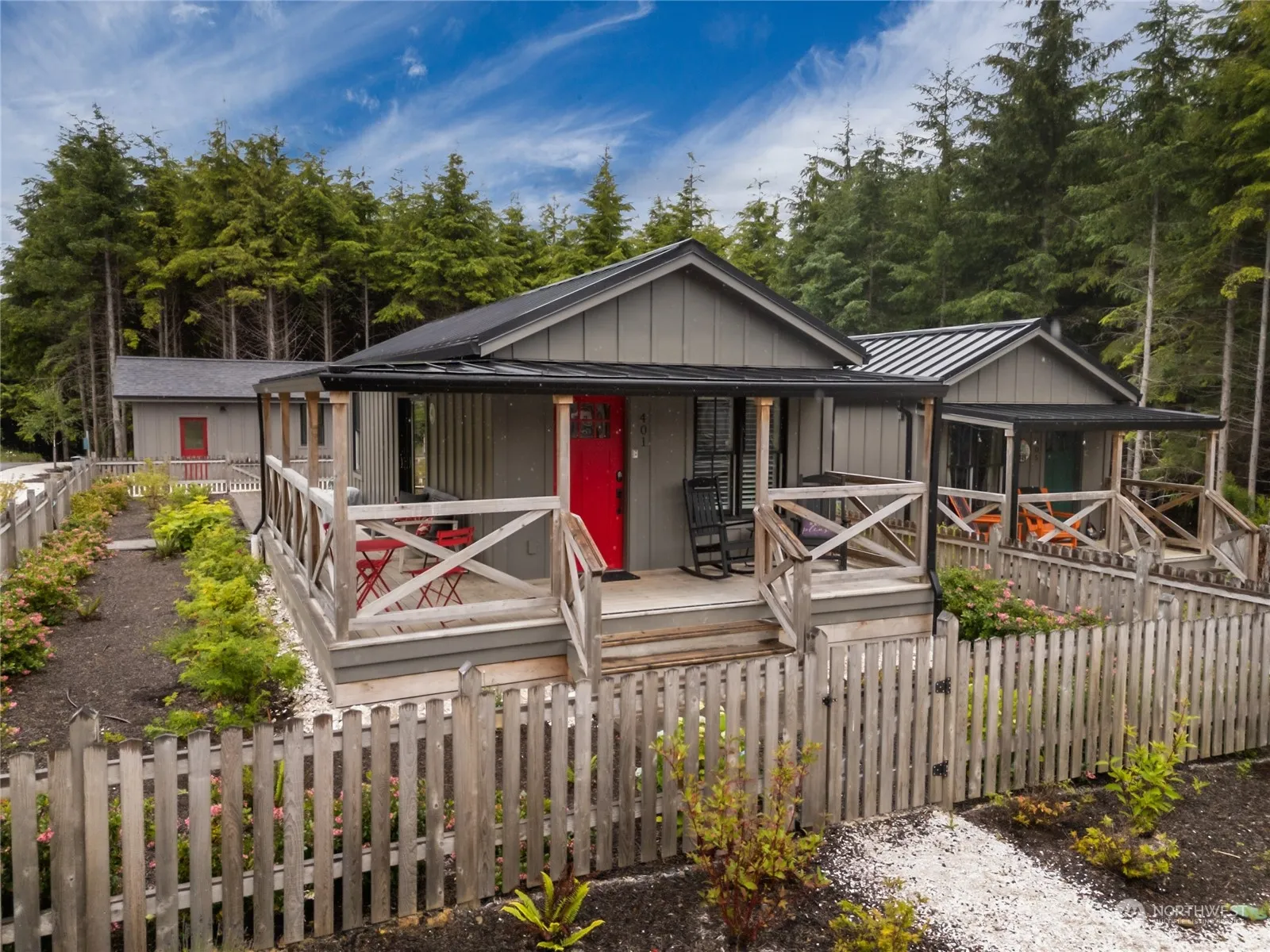 Unwind on the covered porch year-round at Sara Sea, surrounded by a woodland preserve. Step inside from the covered front porch into the cozy, open concept living area that transitions into the built-in twin bunk, full bath, and primary bedroom. Enjoy vaulted tongue and groove ceilings throughout. Wander over to the nearby expansive Meadowview Park in the evenings to watch the sunset or enjoy the trail network a few steps away from the home. An expansive outdoor entertaining area complete with paver patio, hot tub, and a one car garage awaits. This home is sold fully furnished and is currently established as a successful nightly rental.