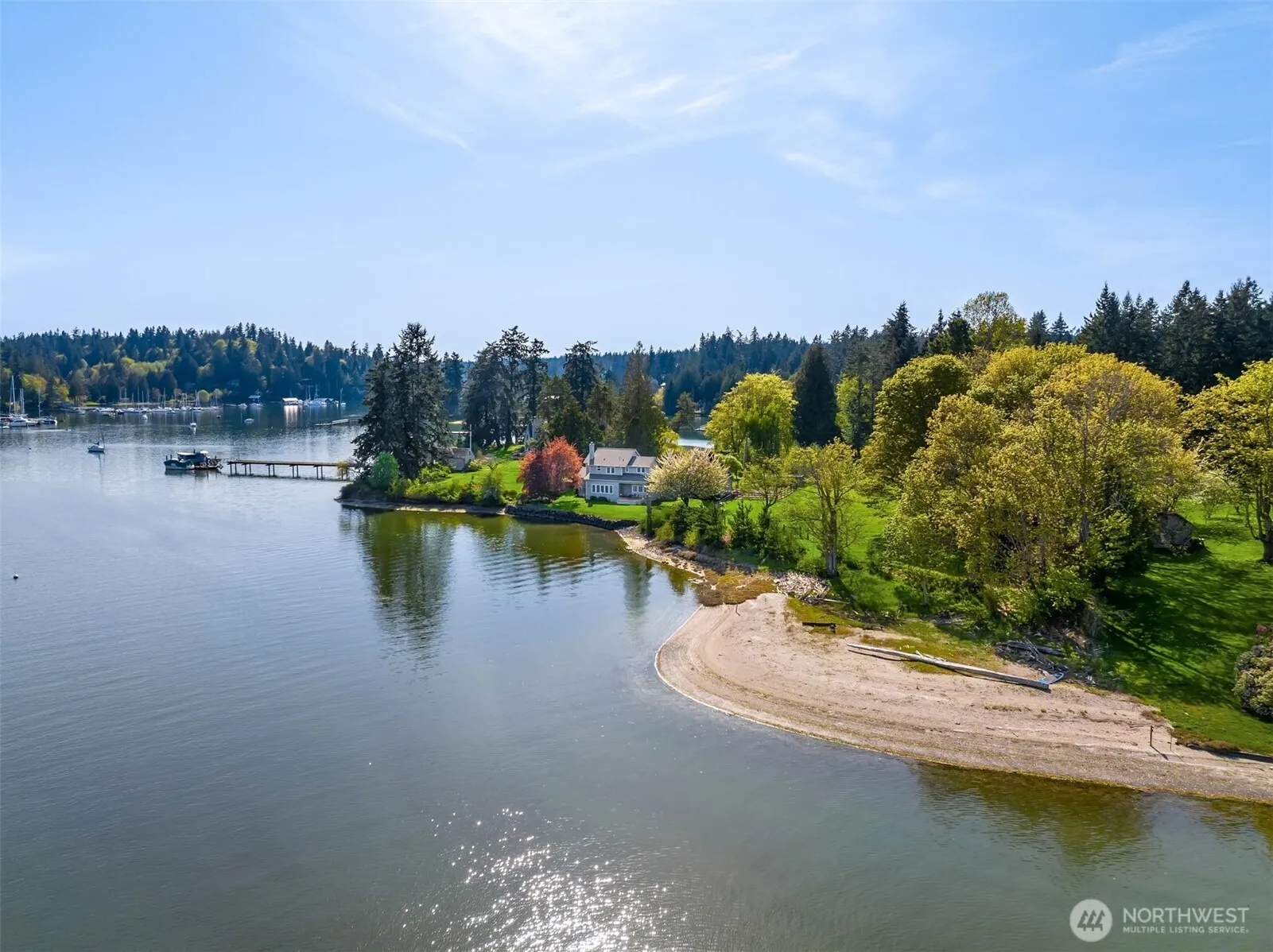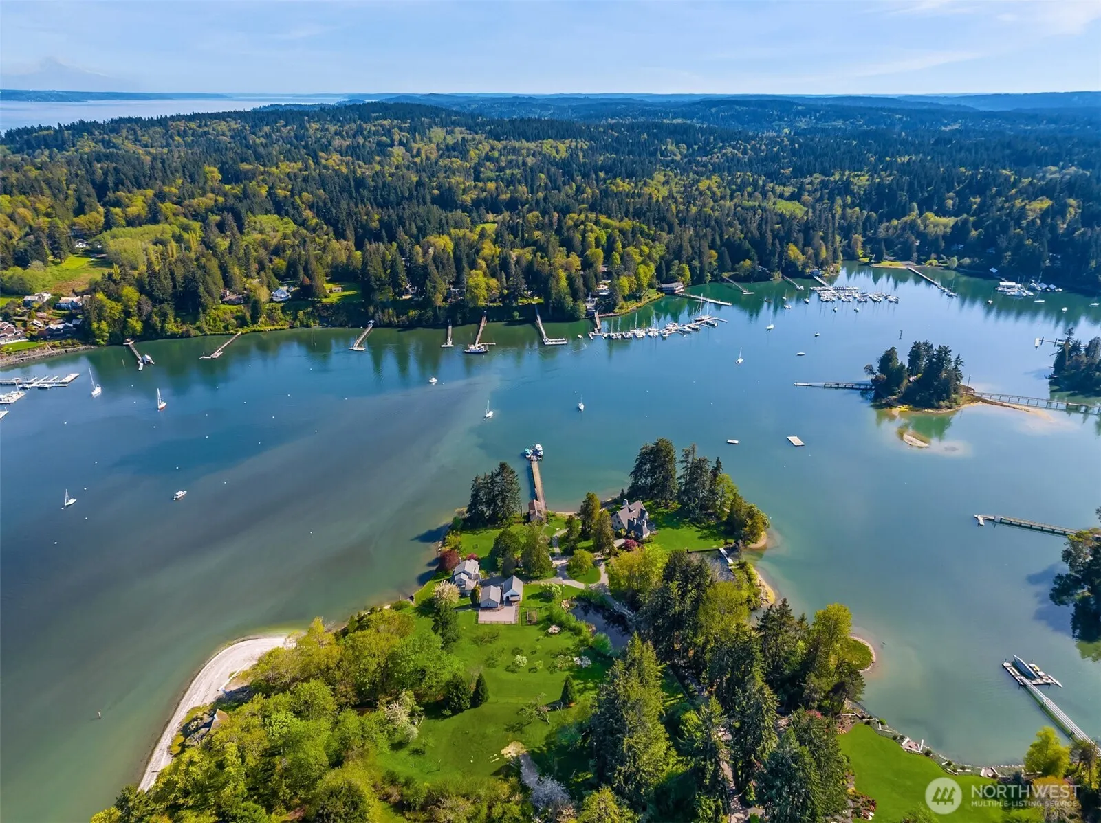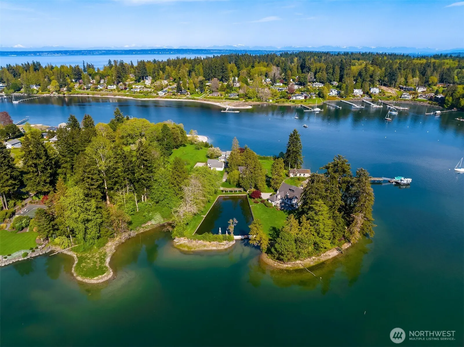 Your own Waterfront park! Port Madison peninsula w/ 1,892 ft shoreline affords views in all directions: Ready for a compound w/ 2 homes & garage apt? A true paradise of sea life, sea breezes, orchard, weeping willows, meadows, and magnificent trees. Explore the best the Northwest has to offer. No better place for a picnic!!!! The impressive 1933 façade adds to the mystique! Commercial quality dock w/ float & irreplaceable boathouse facilitate an array of maritime activities, & 185 ft seawater pool is surrounded by level lawn & terrace. 2005 2nd home boasts Eastern views & expansive beach. studio. 2- 2 car garages, shop, 2 stall-barn w/ paddock. Teems w/wildlife & lush native flora, a sanctuary 1 hour from Seattle. Your legacy estate awaits!