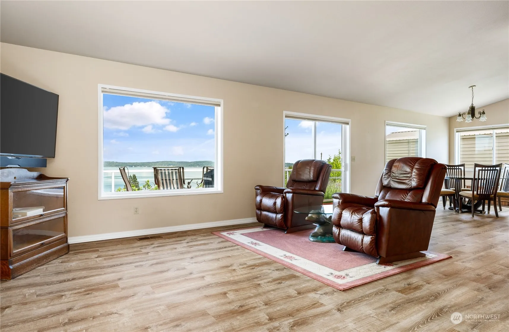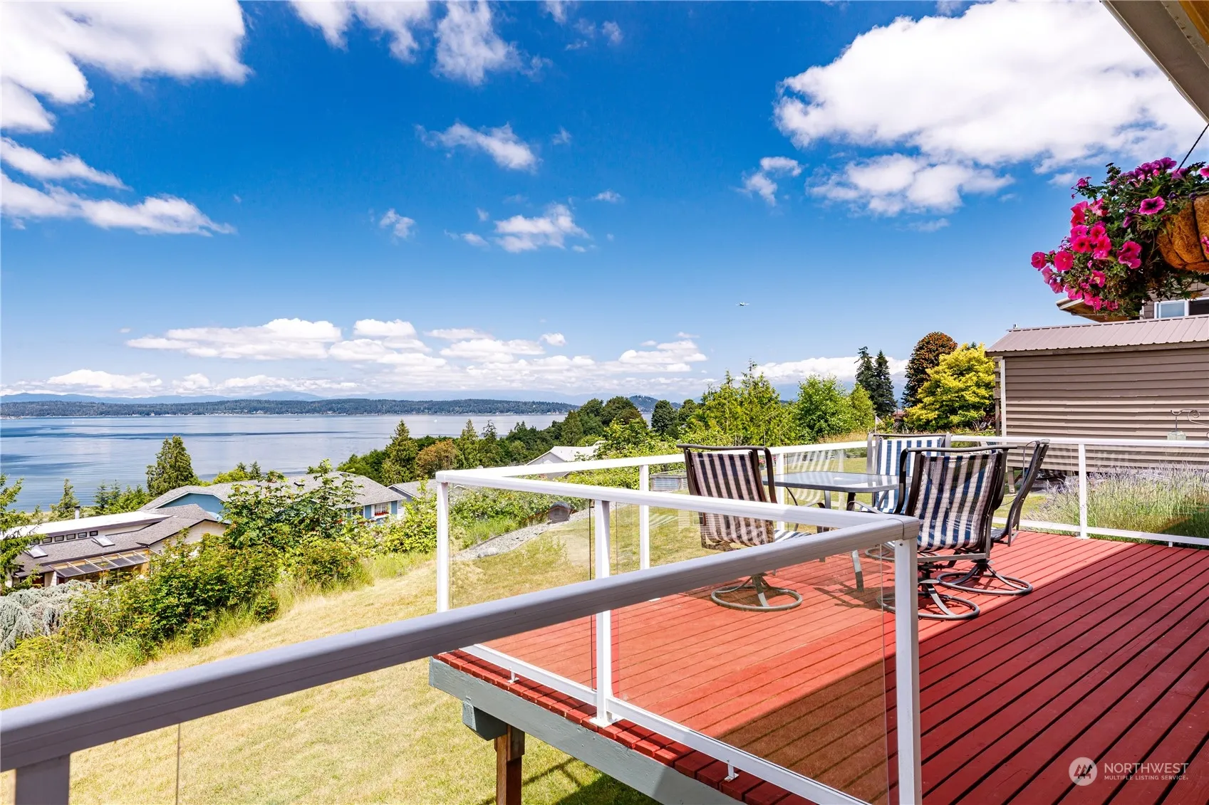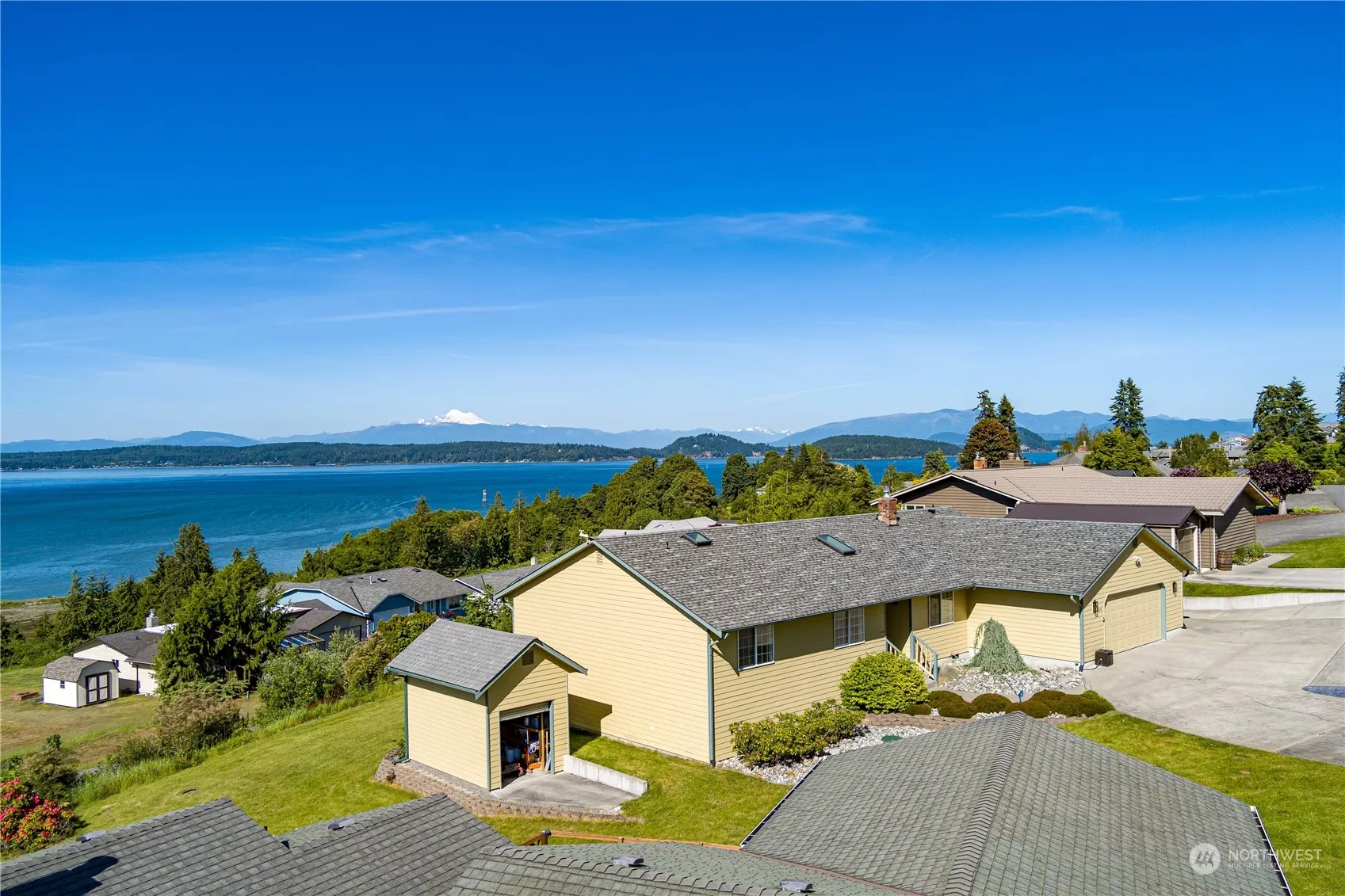 Truly one of the most captivating 180 degree views in all of Dugualla Bay Heights w spectacular Mt Baker views & the sparkling waters of Skagit Bay! This ideal single level home features 3 bedrooms PLUS an office & has been thoughtfully updated throughout! The stunning views can be enjoyed from the Living room, dining room, kitchen & primary bedroom. Gorgeous kitchen has been remodeled with newer cabinets, beautiful counters & an eating bar. Spacious Primary bedroom w a fully remodeled ensuite bath. All new doors & trim. Laminate flooring. New paint in 2023. RV parking w 30 amp plug. Wired for electric car charger. Storage shed w electricity & fully insulated. Residents of the community enjoy a club house, boat ramp/launch & beach area!!