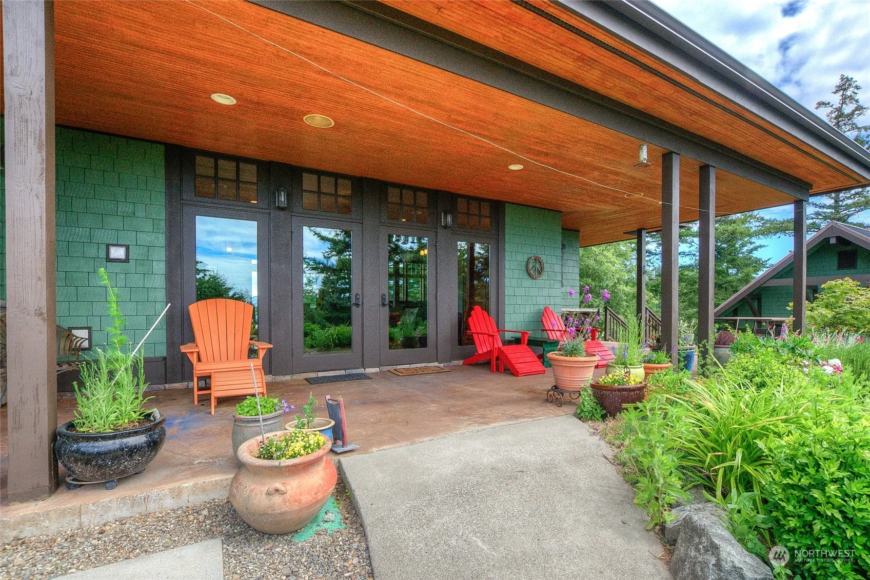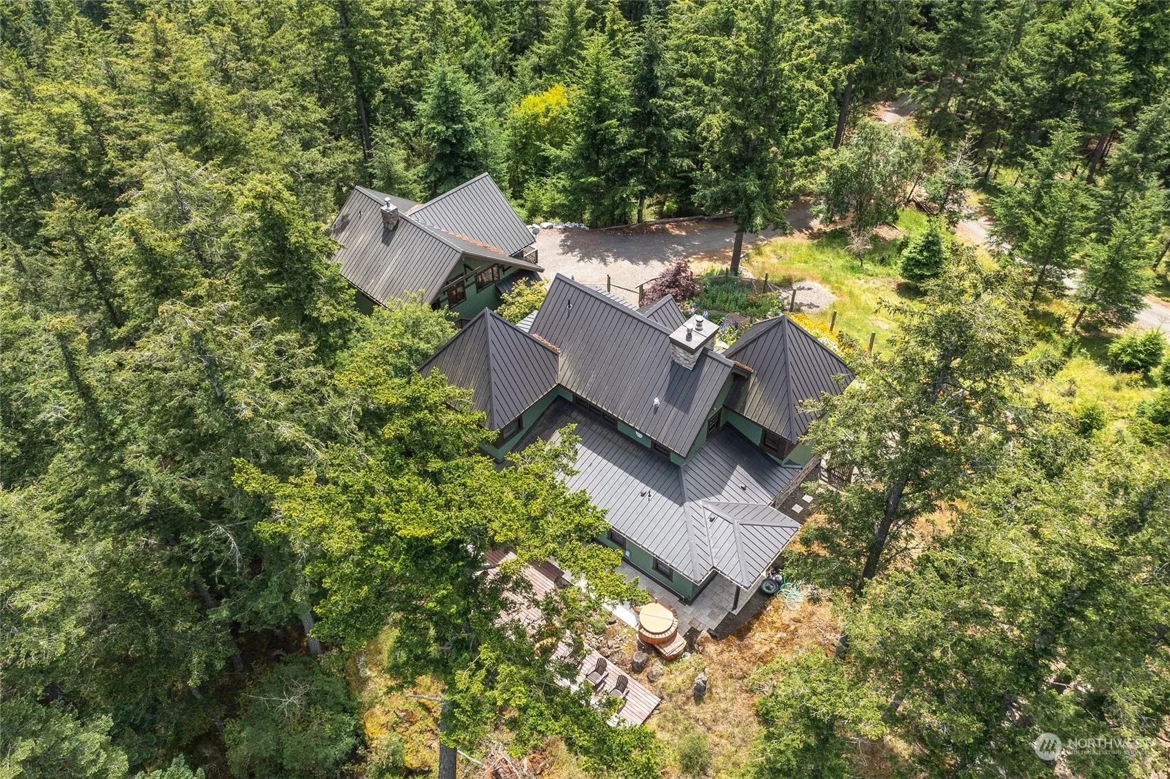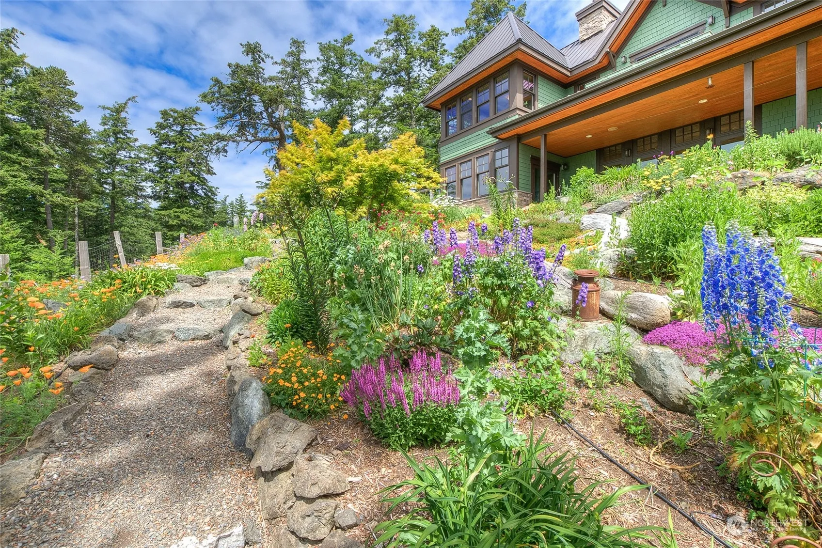 CAPTIVATING MODERN CRAFTSMAN w/killer views, sun & sunsets YEAR-ROUND, radiant floor heating, two primary suites, guesthouse, garage, new exterior paint and a central location 15 minutes to ferry or Eastsound. Two distinctly enchanting vistas: Northerly over East Sound & Georgia Strait to Vancouver & the Rockies; Southwest over West Sound, San Juan & the Olympics. Views from every room, porch, terrace, deck & hot tub! Enjoy a main floor bedroom w/private bath & French doors to the porch & fenced garden. Retreat to a spacious 2nd floor suite w/fireplace, jetted tub, balcony & adjacent “tower” room for office or creative pursuits. AWESOME studio guesthouse w/full kitchen, bath, laundry, loft & balcony over a supersized garage. Come see!