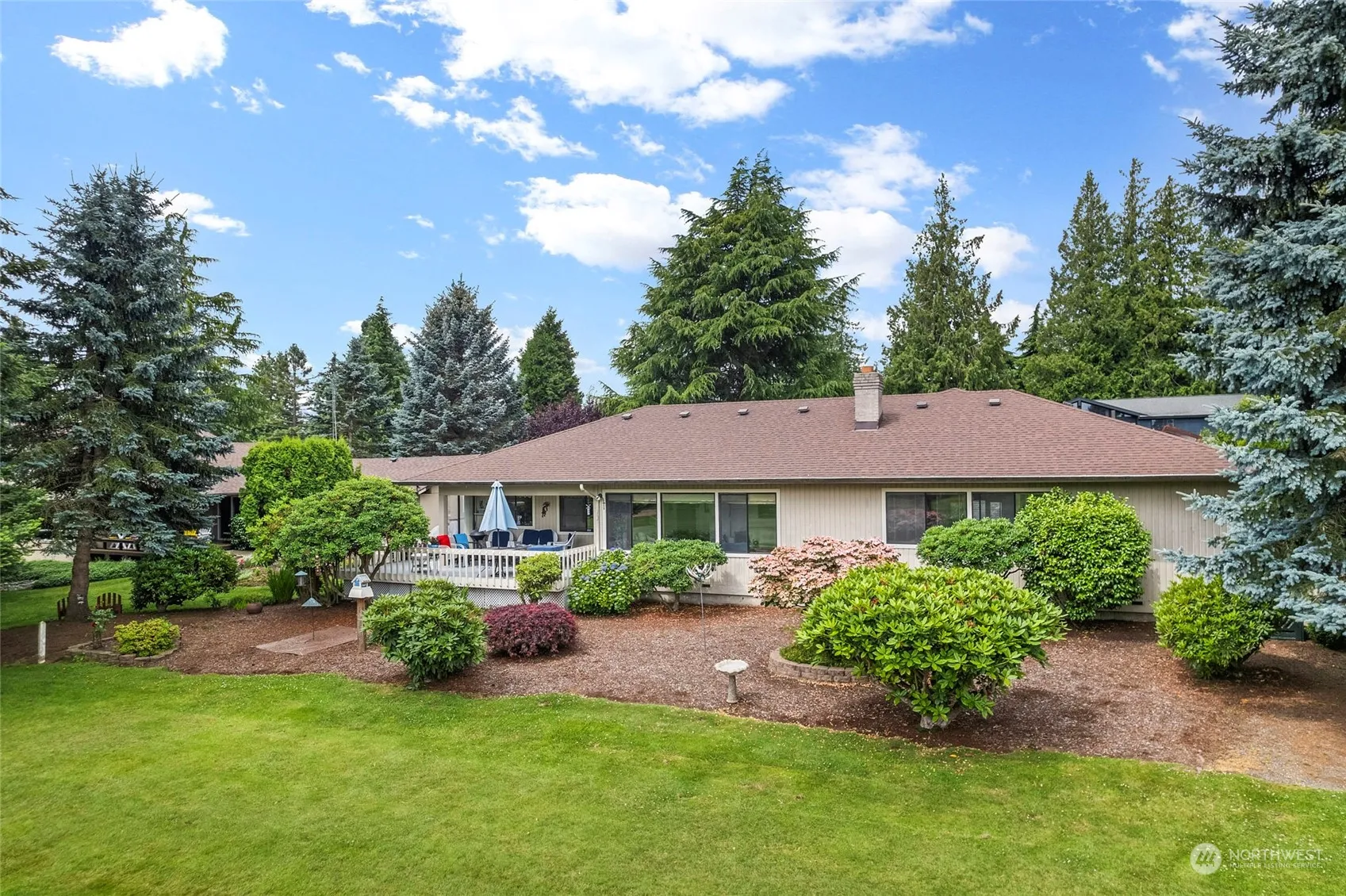 1886 sq ft one level home with 768 3-car attached garage on Fairway #9 at Skagit Golf and Country Club. Three bedroom home with 2 1/2 baths and great floor plan enjoys large windows, tons of natural light and golf course access and viewing pleasure. Abundant cabinets and counter tops in kitchen plus eating space along with a formal dining area. Enjoy sun and shade on great entertaining deck. Primary bedroom with walk-in closet, 3/4 bath and golf course view. 8-yr old roof, 3 yr old gas furnace. Large garage has plenty of room for the hobbyist, autos, golf cart and storage. Low maintenance landscaping includes a gazebo, vegetable garden and mature plantings.