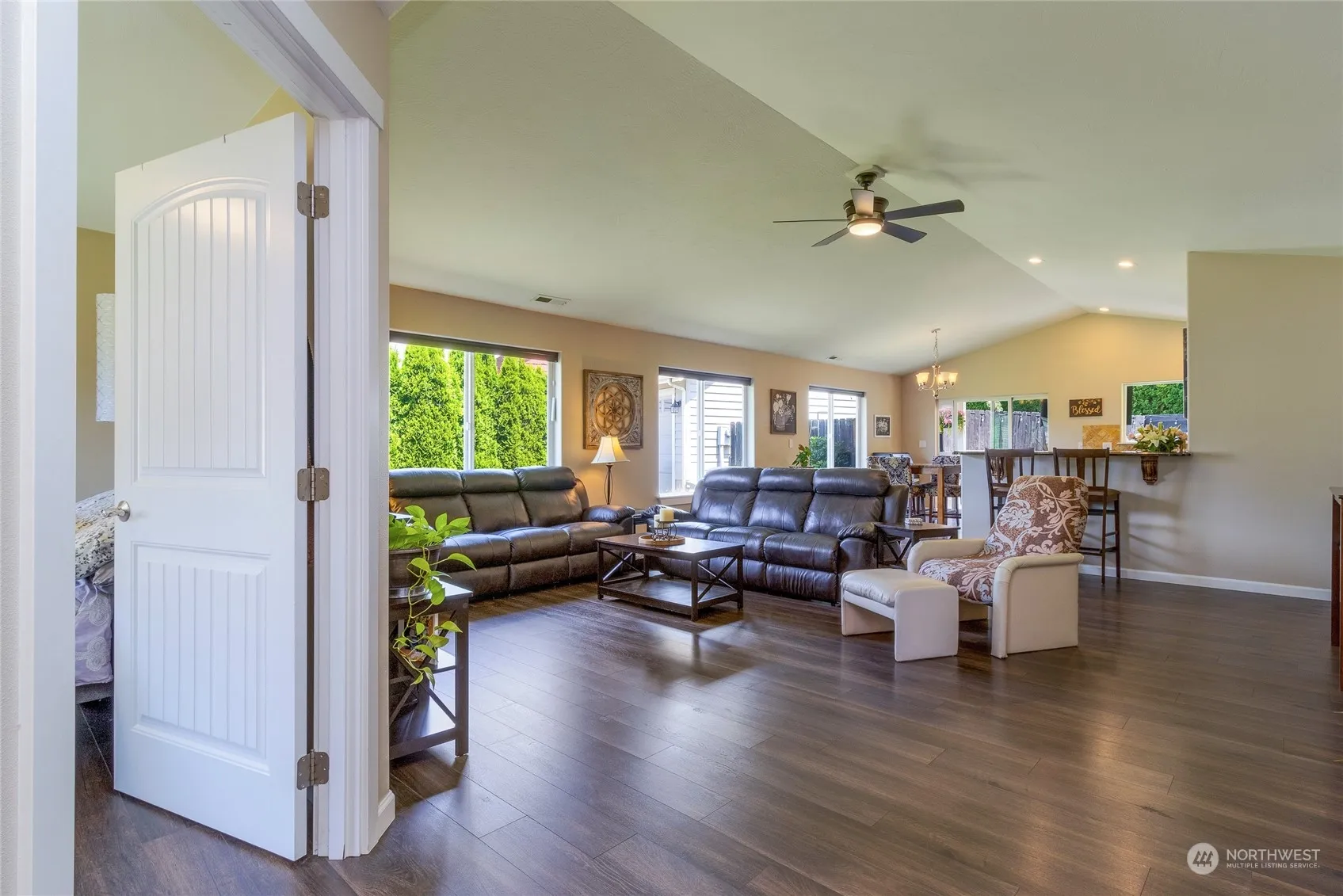 Beautiful single-story home. Built with ease of living in mind, larger door openings and no steps, perfect for “tiny footsteps” or aging in place. Established landscape provides privacy. Large covered back patio…Enjoy the morning sunshine while sipping your coffee or glass of wine in the evening, shaded and comfortable! BBQ or dining alfresco, great connectivity from kitchen/dining makes it possible to extend living spaces outside. Fully fenced perfect for “fur babies” with plenty room to garden. Light filled rooms with functional layout offer great space to both relax or entertain. 4th bedroom situated at front of home so easy to use as home office. Close to school, shopping, and bus line. Nestled on a quiet dead-end street, no traffic!