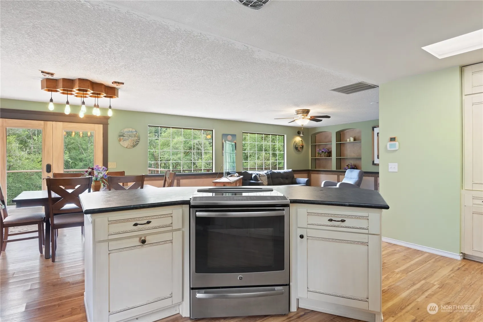 Extremely private and quiet. 4 Bedrooms with 2.75 bathrooms. Open floor plan with updated kitchen cabinets and countertops. Spacious living room and dining area, two baths, two bedrooms and a utility room upstairs with deck overlooking Coal Creek. Downstairs 2nd kitchen, two more bedrooms, Costco size pantry, full bath, family room and a large workshop with w/d hookups. Separate entrance with private patio makes this ideal for multigenerational living. Newer roof and updated vinyl windows. RV/Boat Carport, Storage outbuildings, Double car garage and RV pad with hookups for guests all on 4 acres with Coal Creek Frontage!
