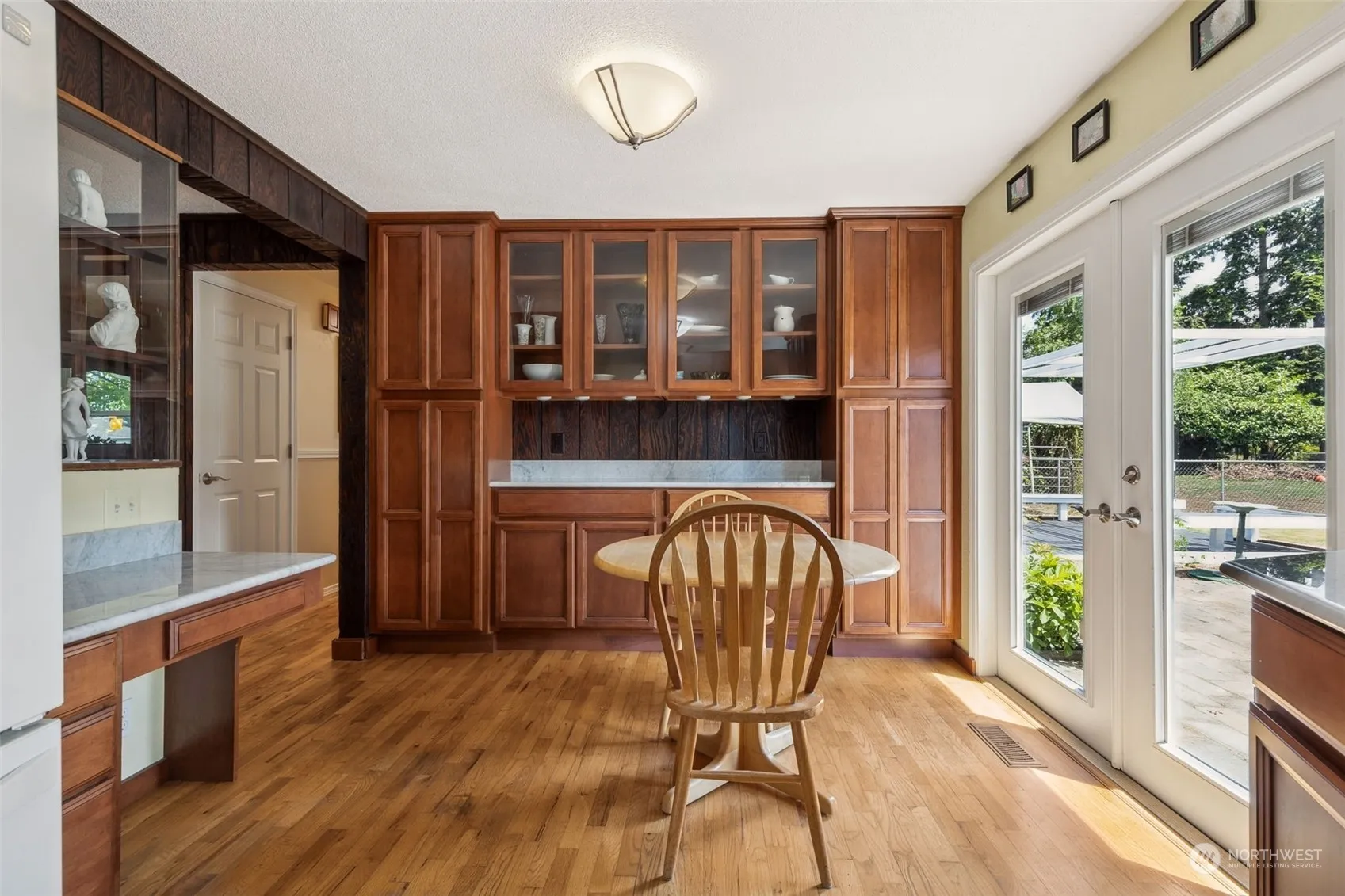 One Story Living in Spanaway! Lovingly updated 3 bd, 1.75 ba home on a large lot. Kitchen w/gorgeous Carrara marble counters & cherry cabinets w/lots of storage. Spacious primary suite w/newer updated bath w/tiled walk-in shower & heated floors. Oak hardwoods in majority of home. Bonus/den has heated tile floors. Updated guest bath w/tile surround & marble floors. Heat pump w/AC for those hot summer days. Enjoy the deck & large patio that is perfect for year round enjoyment. Huge fenced backyard. RV parking. Two roomy sheds w/power, possibly convert to a shop/studio? 40 year composition roof & solar panels put out in 2021. Generator hard wired in. All appliances stay! Close to JBLM, schools, shopping & restaurants.