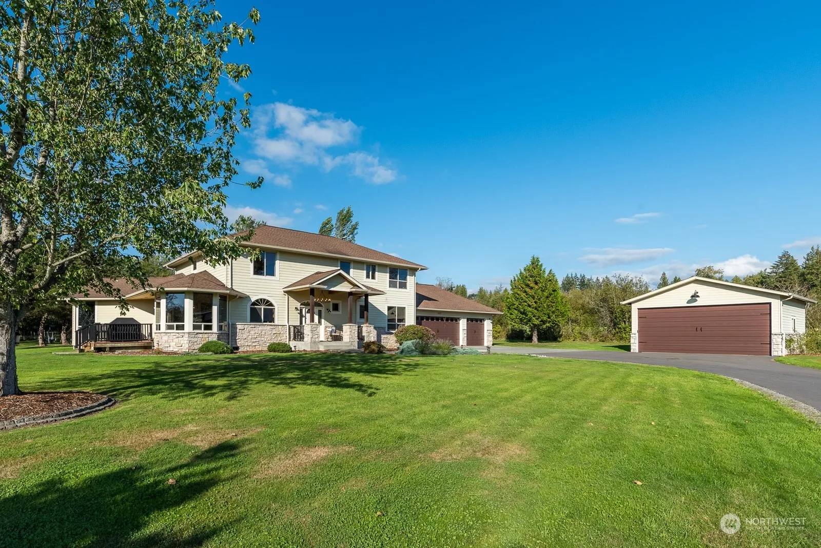 Welcome to Hidden Lake Ranch! Discover this 9.52-acre equestrian estate w/ 1+ acre private lake. Features 70X200 covered Riding Arena/ lighted/German felt, & sand footing/dressage. Fully equipped 36X48 Barn, 4 stalls w/ 50-ft runs/automatic waters/horse wash station/live in tack rm w/kitchenette & full bath. Lg 36X34 Storage bldg., w/3 Bays. 25X30 shop w/loft. Custom 3602 sqft home fully updated. Open floor plan, Lg kitchen W/ cook island, breakfast area & entry to covered deck. Floor to ceiling windows with lake views. Game-rm w/wet bar & 2-sided FP. Primary w/ensuite, dble walk closets, dual vanities. Guest bdrm, Office & Main level guest suite. Stocked lake. 7 fully fenced Pastures. Hot tub! New pavement! Minutes to I-5 and recreation.