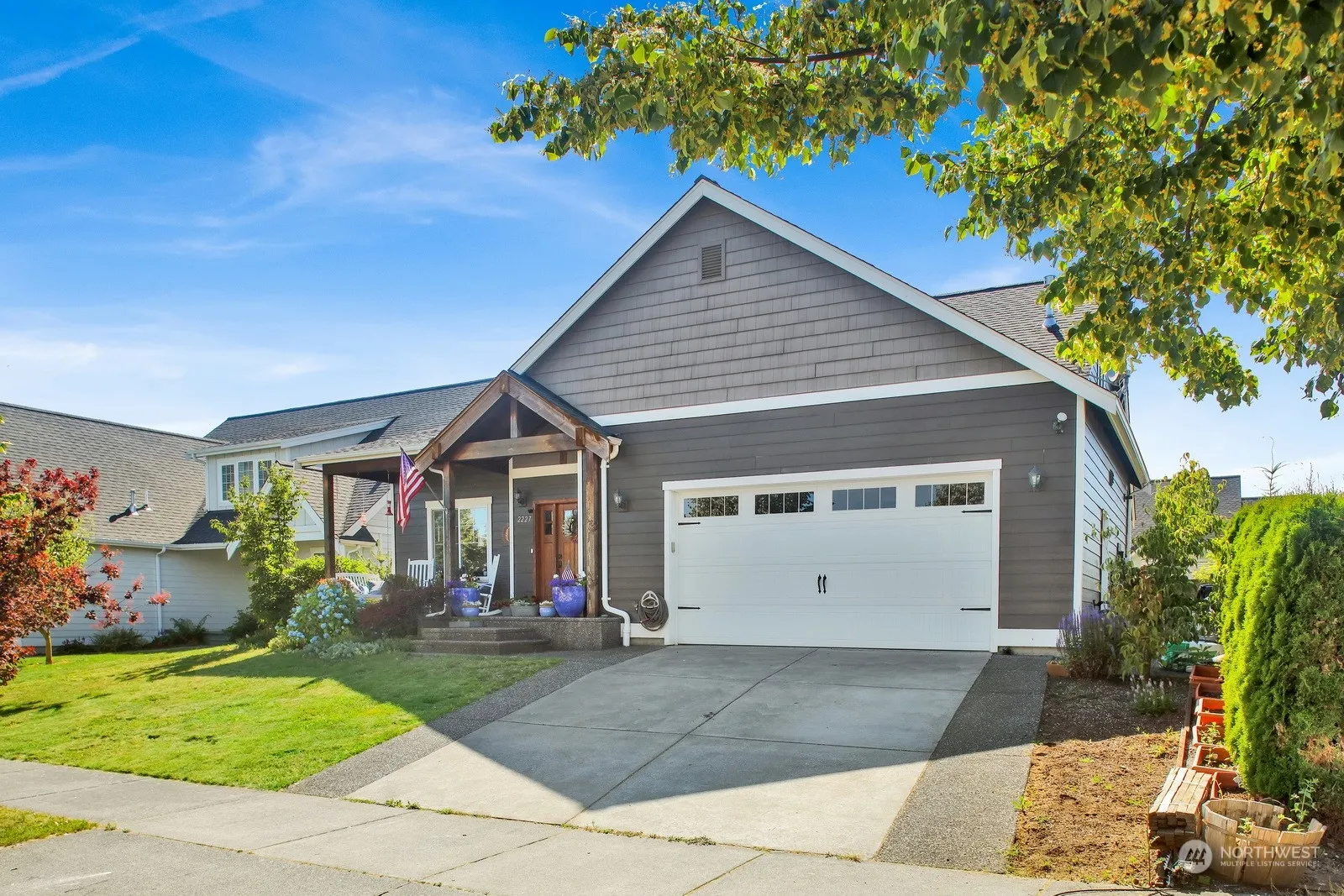 Welcome to your dream home in the heart of the popular east side of Lynden! This stunning 2,029 square foot, 2-story residence offers 3 bedrooms, a den w/elegant French doors, & 2.5 baths. The property boasts a 7,405 square foot lot, featuring a fully fenced backyard complete with extended patio & charming gazebo, ideal for outdoor gatherings. The garden shed provides additional storage for your gardening tools. Vaulted ceilings in the gathering room create an open airy feel, along with a cozy gas fireplace. The kitchen is outfitted with stainless steel appliances, granite countertops, & bar seating. Enjoy the convenience of a spacious main floor primary bedroom, providing a serene retreat with easy access. Don’t miss this opportunity!