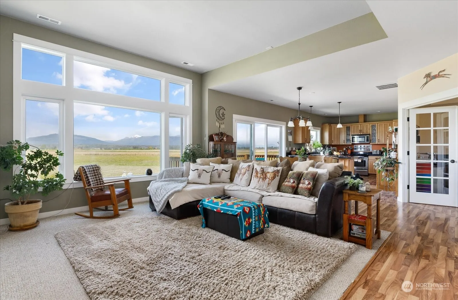 Captivating 37-acre Skagit Flats farmland…96’x168′ barn with a 72’x144′ indoor arena, 8 stalls, plus hay & shaving storage, office areas, 3/4 bath, & laundry w/additional 1/2 bath. 9 outdoor fenced paddocks w/ 7 shelters. One level 3 bdrm, 2.5 bath, 1977 sq ft, den, great rm w/gas frpl, high ceilings, built-in bookcases, primary bth w/separate shower/jetted tub, dbl vanity, spacious kitchen, laundry area & 2 car garage. Overhead storage in the garage.