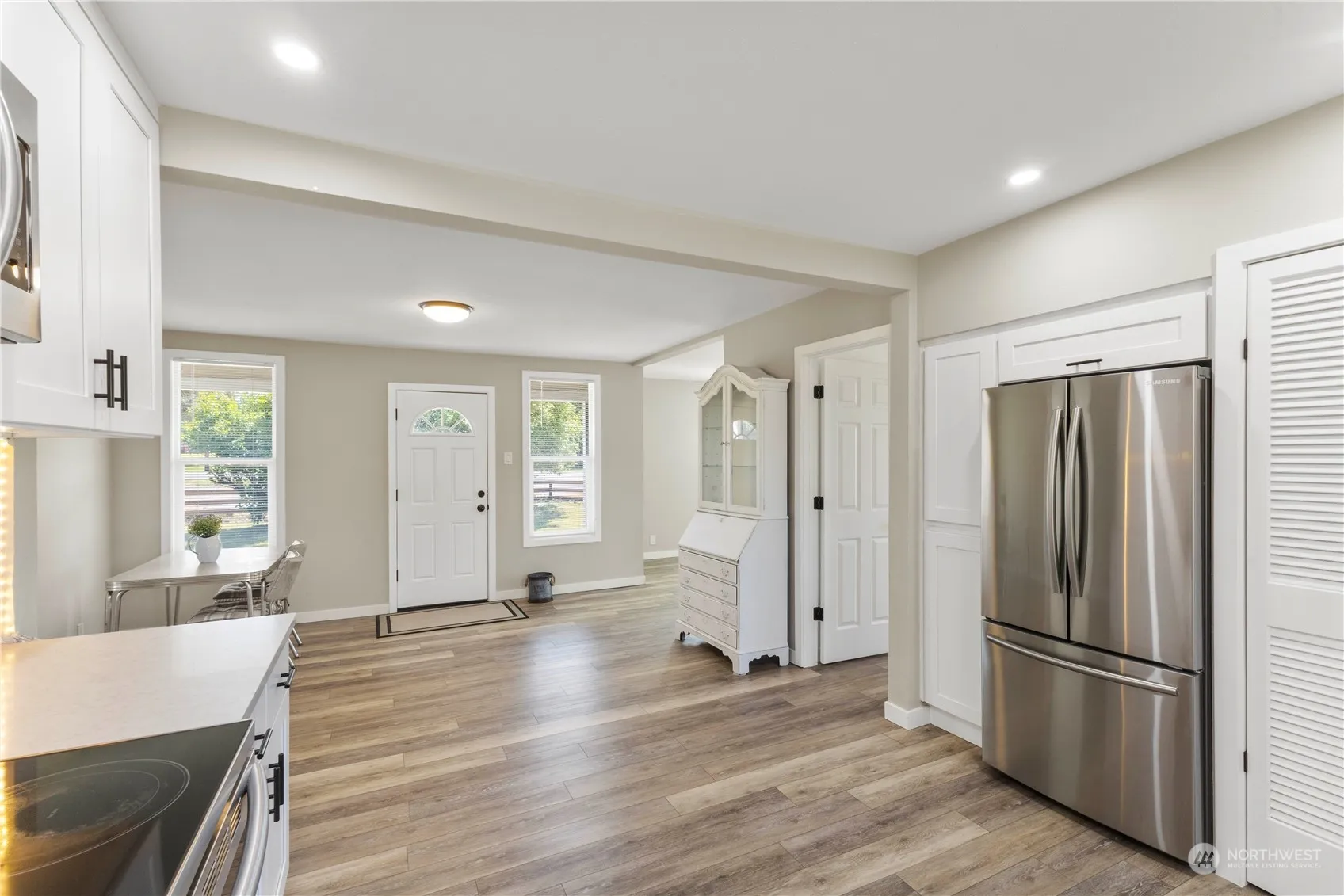 Welcome to this adorable Buckley rambler, completely remodeled in recent years and brimming with charm. As you step inside, you’ll be greeted by newer flooring and a stylish kitchen adorned with stainless appliances, quartz counters, and chic subway backsplash. The updated full bathroom features elegant shower tile work and a convenient storage niche + an attached utility room with stackable washer & dryer. Exterior updates (approx. 4 years old), include siding, roof, paint, and gutters. Ideally situated in downtown Buckley, you’ll be within walking distance to restaurants, shops, coffee, trails and parks. This beautiful home, zoned for commercial use, offers endless opportunities (buyer to verify all potential uses). Don’t miss this gem!