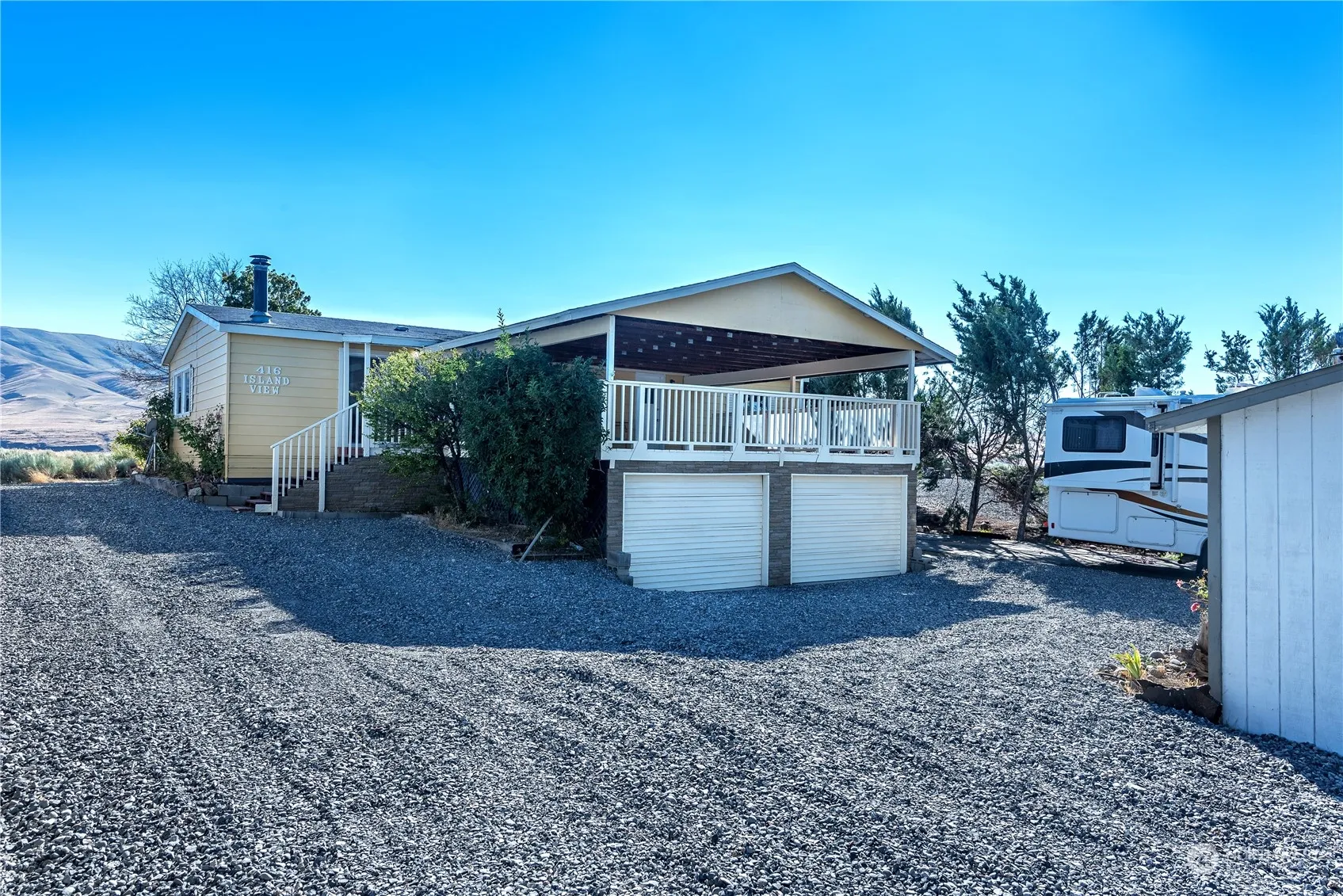 Explore an exceptional opportunity—an affordable waterfront home in Desert Aire, boasting breathtaking Columbia River views. Whether you choose to live here year-round or enjoy it as a second home, you’ll have access to wonderful amenities, including golf, boat launch & a pool. Tucked away on a secluded property, this home features a 2-car garage for all your storage needs, RV parking space & a roomy shed that can double as storage or a workshop. Inside, you’ll find 2 generous bedrooms, along with a potential 3rd bedroom or office space. The kitchen seamlessly connects to the spacious living area, perfect for entertaining during those beautiful summer days. Revel in stunning vistas of the lake, mountains & the mesmerizing desert sunsets.