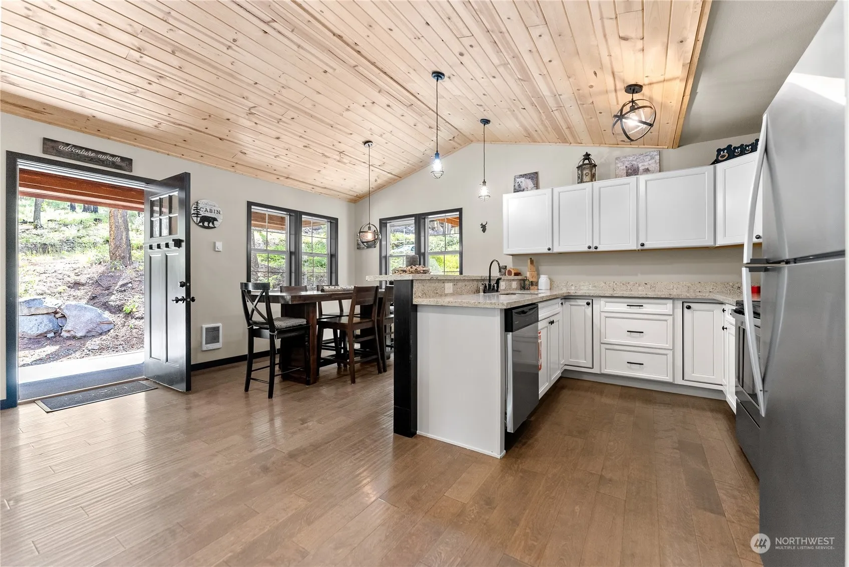 Check out this active nightly rental in Mazama with strong rental history, great ski trail access, peaceful forested surroundings and easy access to the best of the Methow! Newer (2018) well-maintained cabin with a modern flair has two spacious bedrooms with plenty of storage, two full bathrooms and an open kitchen/living area – this is a great weekend getaway that can easily accommodate longer-term stays or even full time living! Nearly quarter-acre lot adjacent to large common area buffer, fire pit in the back yard. Cabin can be left mostly furnished if desired!