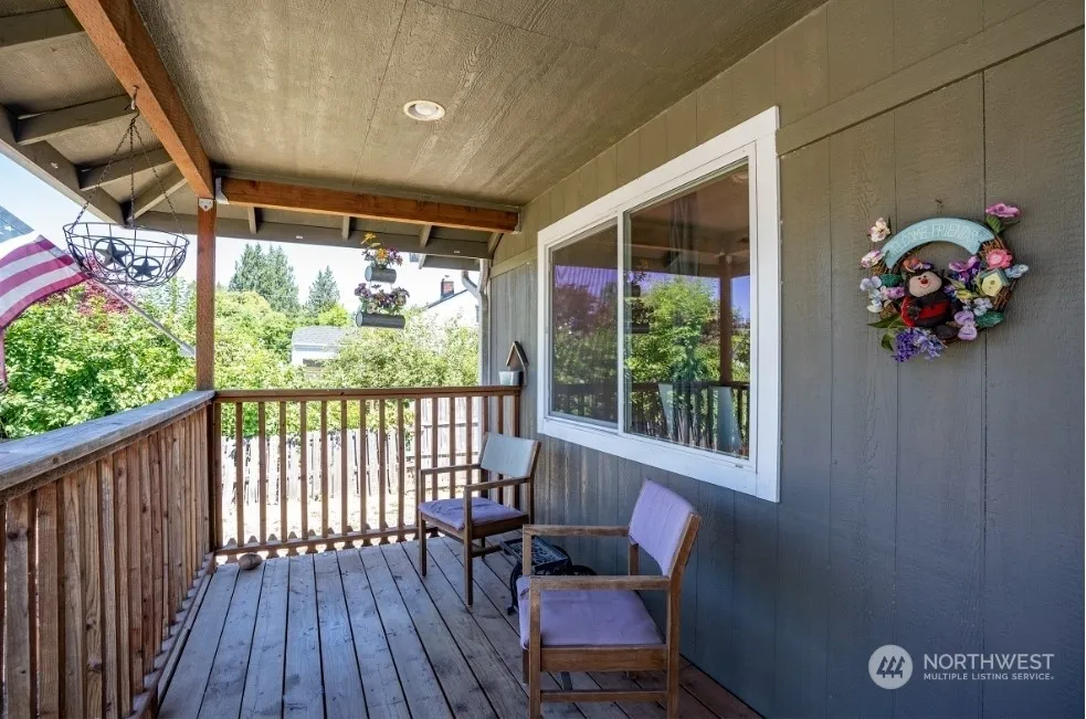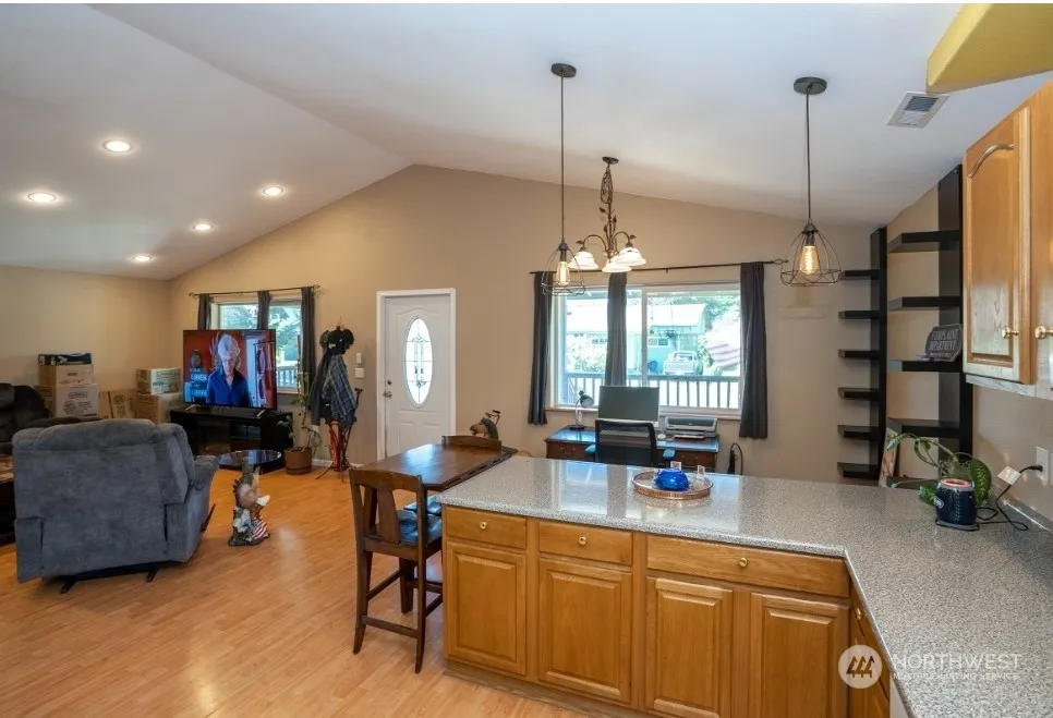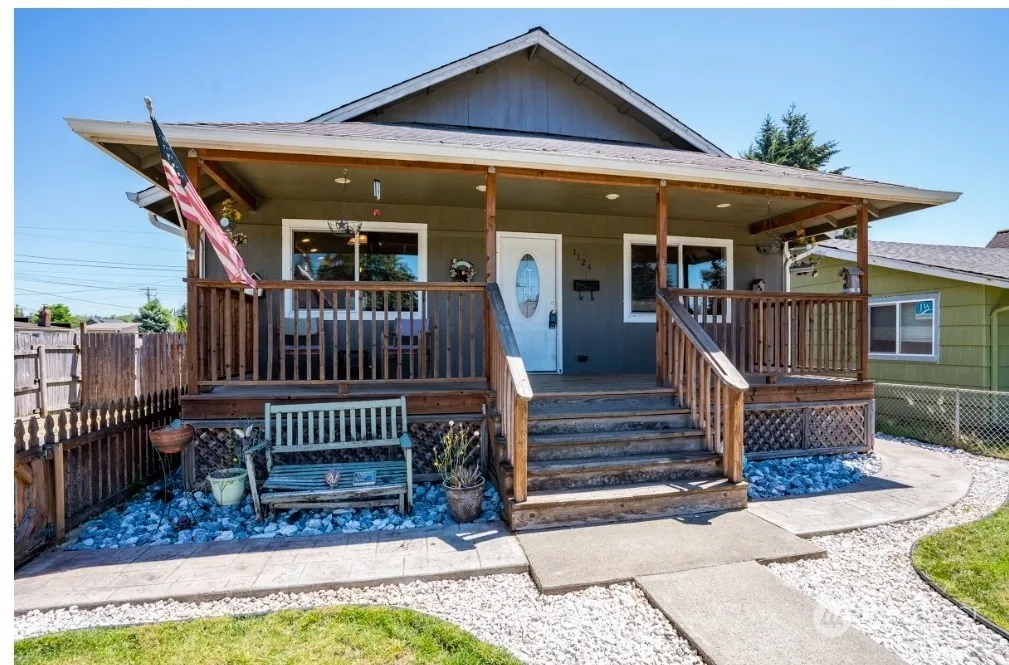 Discover a modern haven in Centralia! Nestled in the vibrant Edison District, this home welcomes you with a spacious front porch and impressive vaulted ceilings. Step inside to an open-concept layout featuring spacious countertops with upgraded kitchen sink. The kitchen seamlessly flows into a generous great room, perfect for entertaining. Enjoy the convenience of a walk-in pantry and the new flooring in the hall, bedrooms and the utility room. This 2 bedroom 2 full bathroom with primary’s own bathroom has jacuzzi tub, walk in closet. Laundry room with back entrance and deck. W/D stay! Heat pump/AC! The Outbuilding has power, front driveway and ally give full access to the back yard. Fully fenced, room for a workshop or ADU.