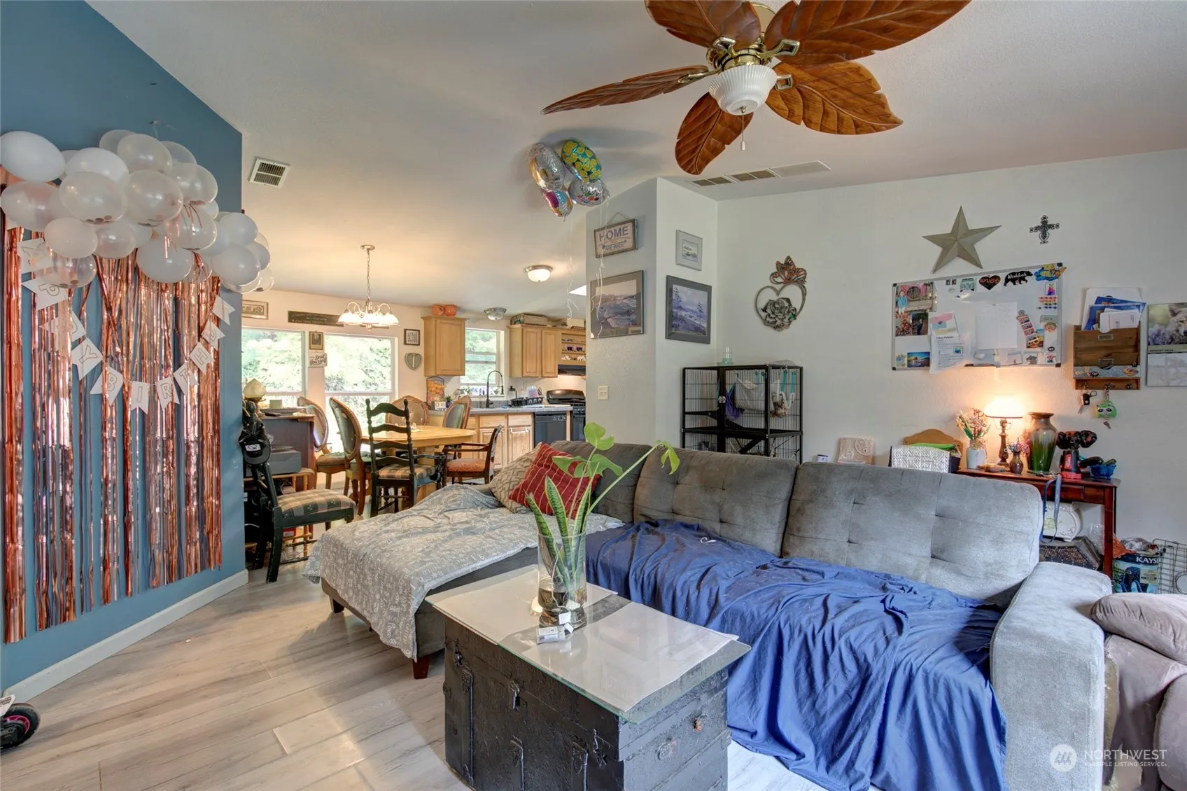 This double-wide manufactured home is located on a 5.5 +/- acre site in the Wishkah Valley. It is also within 11 miles, or an 18-minute drive, of the City of Aberdeen. The 1,917 +/- square foot home, built in 2004, has 3 bedrooms and 2 bathrooms. The home has a living room, dining area, family room, kitchen w/ eating space, den/office and utility room. The primary bedroom has an ensuite bathroom. A new composition roof was installed in 2021. The 1,728 +/- square foot shop/garage has a concrete floor and power. The land has a varied topography and is heavily wooded. The property is served by a private well and septic system.