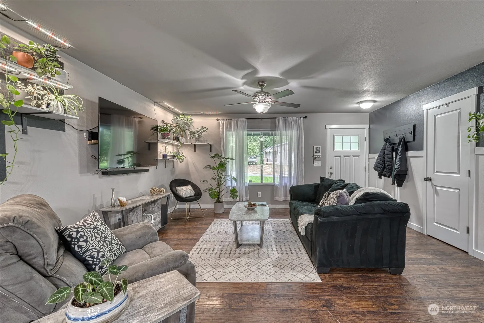 Discover comfortable living in this 3 bd 1.75 bath 1520 sqft rambler in the heart of Belfair. This home features a well-manicured lawn and welcoming front porch, a gourmet kitchen with slab granite countertops, stainless steel appliances, and a tile backsplash, and access to a community park, pool and, private waterfront park. Walk into an inviting living room, dining room, and kitchen to the right with access to the utility room, pantry, and garage. To the left of the living room, a hallway leads to 2 bedrooms, a full bath, and the primary room with 2 closets and an ensuite. Enjoy an expanded deck, hardwood floors, a 2-car garage, and RV parking. Convenient to local area shopping, Highway 3, and within 40 minutes of naval bases.