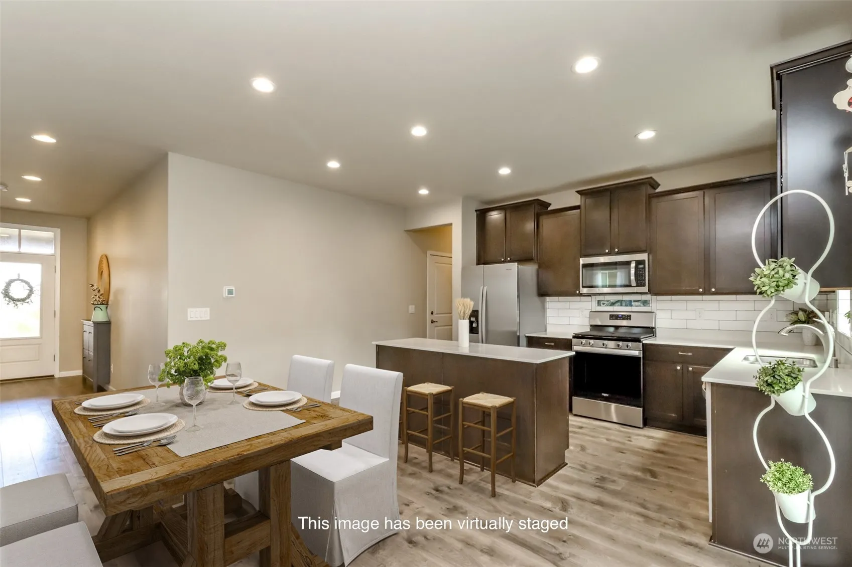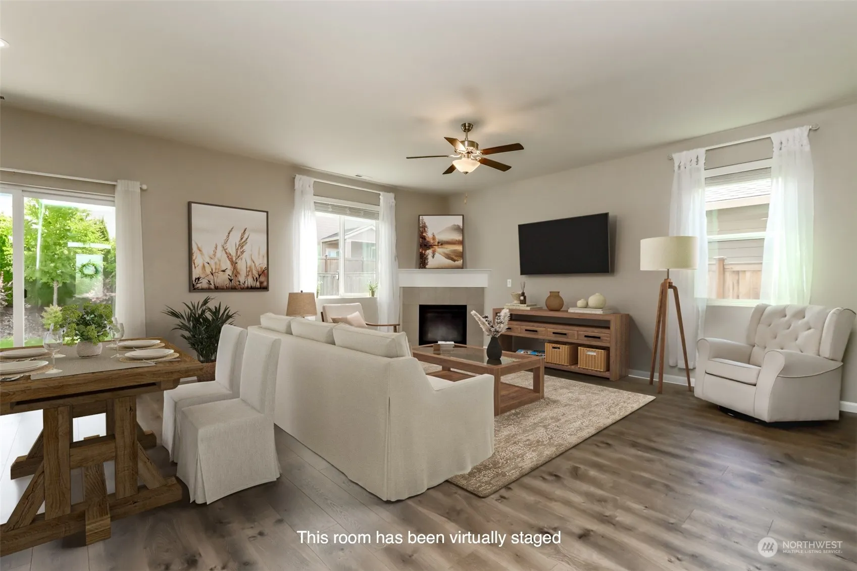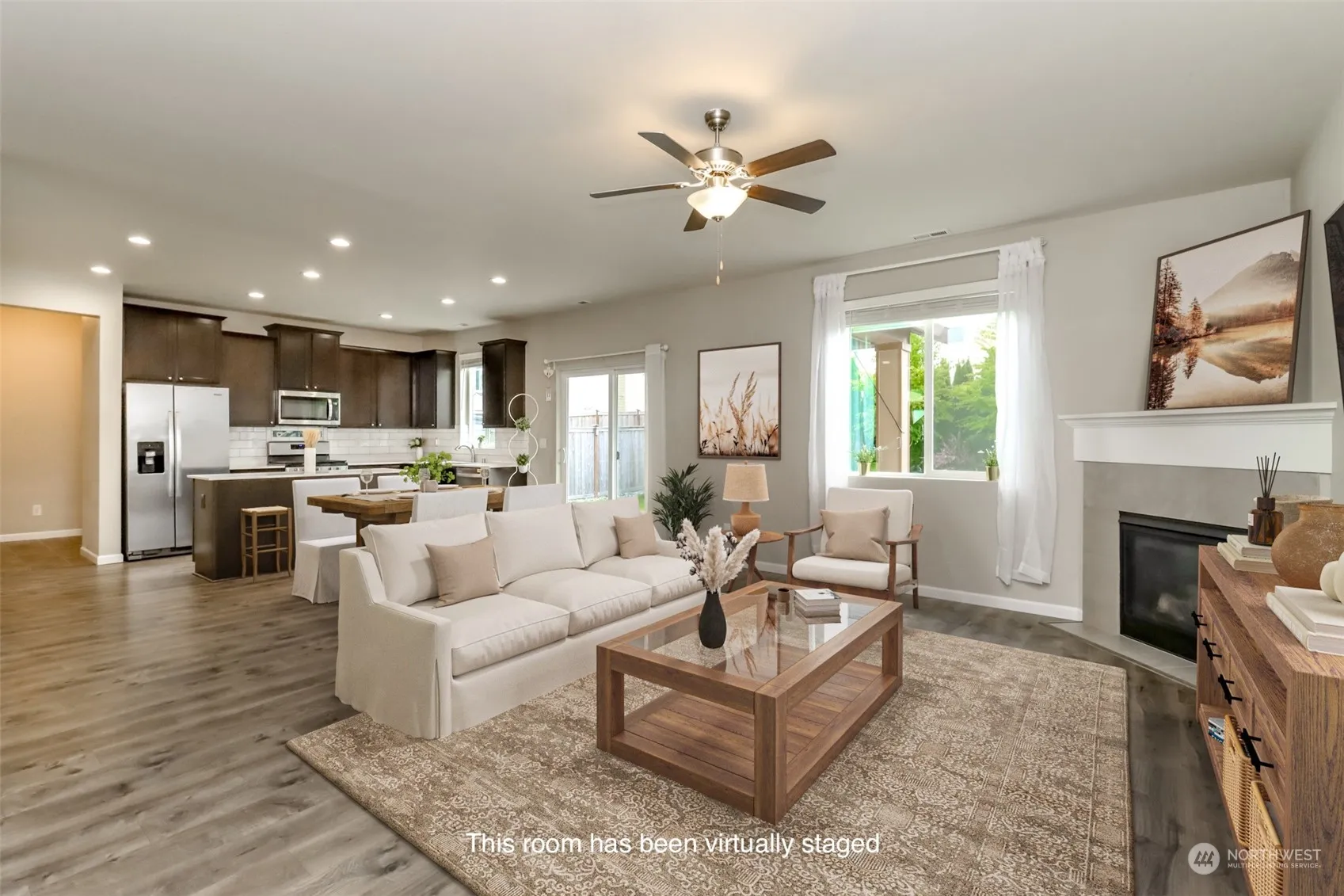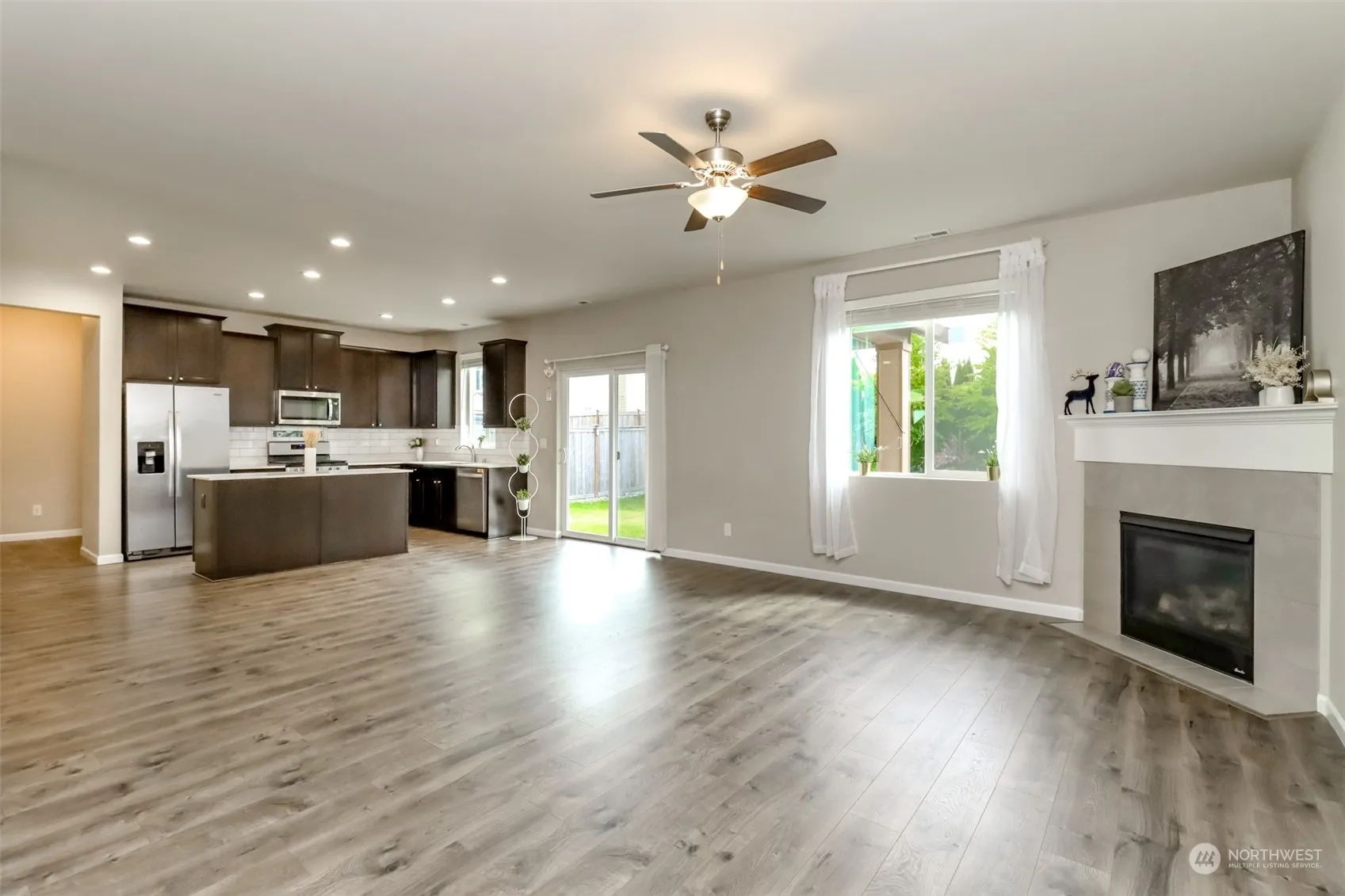 Impeccably maintained home with 5 generous bdrms & 3 full baths. Open floor plan with quartz counters in the kitchen, stainless appliances, beautiful laminate floors, large pantry & a huge great room with a gas fireplace. Guest room /Flex room on the main & full bath for your guests. Upstairs his a huge bonus/loft, storage closet, 3 additional bedrooms 2 with walk-in closets. The grand primary suite has a beautiful custom wall a 5 piece bath, beautiful tile work, quartz counters & walk-in closet. Seller added racks to closets, pantry & had the yard professionally landscaped to enjoy privacy & beauty of the yard. The garage is fully sheet rocked & painted. Room for everyone in an extremely functional floor plan. No detail was missed.