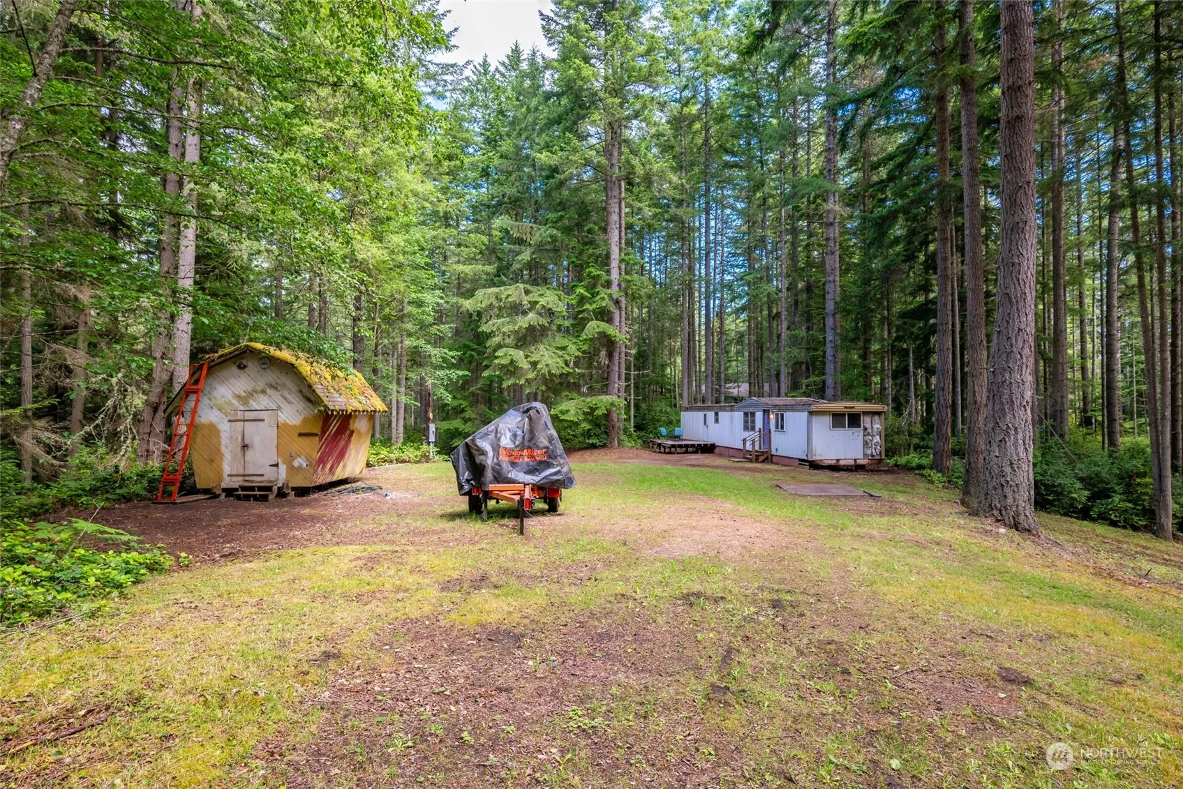 Escape to your private oasis in Langley on Whidbey Island. Endless possibilities. Beautiful 10.22 acres parcel with two permitted access driveways on paved road. Existing Trailer, Shed, and Workshop: While you craft your ideal home, take advantage of the comfortable living space provided by the existing manufactured home, and the convenience of a shed and workshop for storage and projects. The south-cleared half of the property features an installed septic system, while the north-cleared half is equipped with power, cable, phone lines, a well, and another septic system. With the groundwork laid out, design and build your dream home exactly how you envision it. Vegetation is Salal and Huckleberry bushes. Trees are Pine, Fir, and Hemlock.