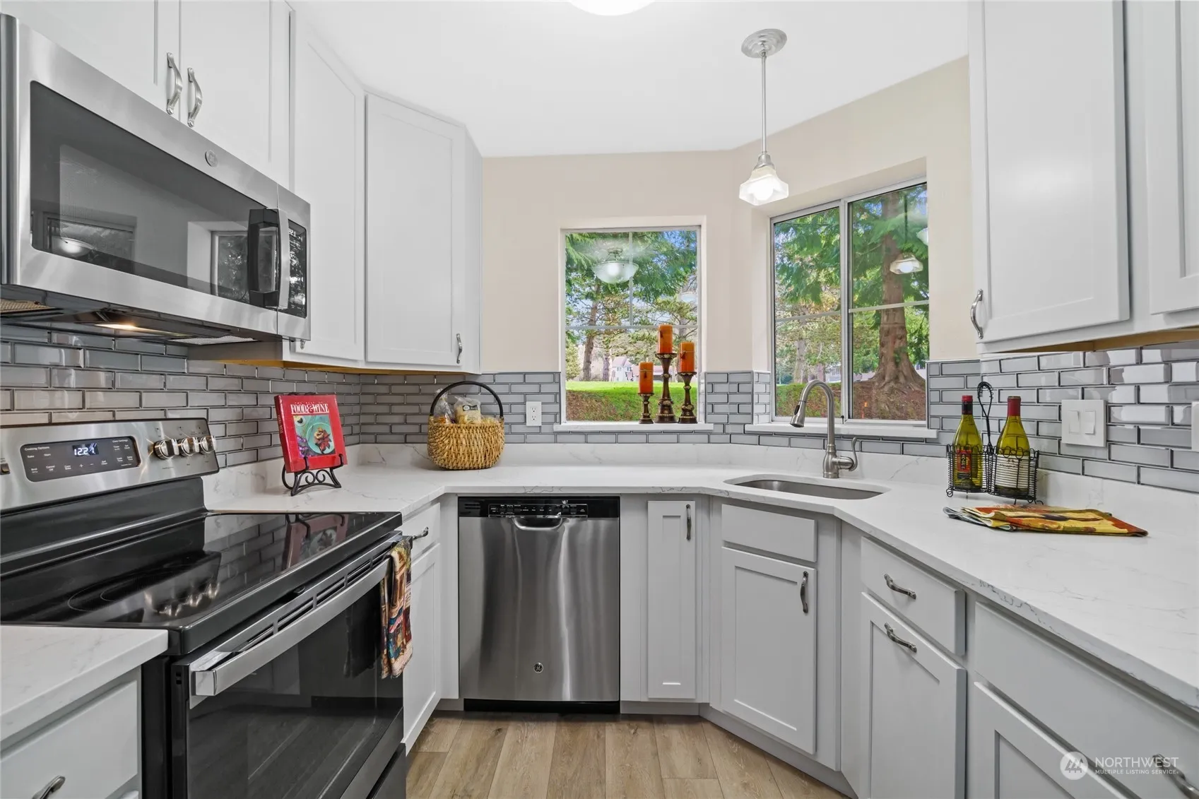 Seller will pay for all of buyer’s closing costs! Great value in Harbour Pointe! $30,000 price improvement and brand new flooring! Two-bedroom condo in “The Hamptons”. One-level living at ground floor in this nearly 800 square foot condominium. Enjoy all of the fantastic amenities that Harbour Pointe offers as well as the club house and outdoor pool at the Hamptons. This unit has been updated in recent years, including stainless steel appliances, quartz countertops, and bathroom. Covered patio area is perfect for BBQ and features a storage closet. Two parking spaces (highly desirable) convey with this condo. Mukilteo schools.