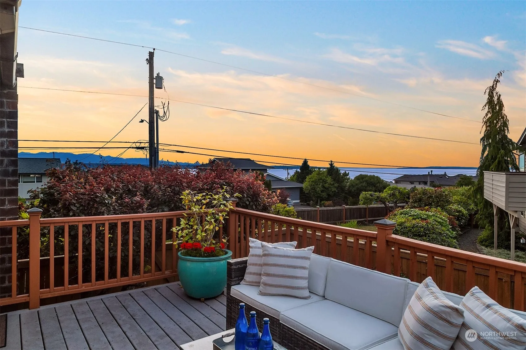 West-facing 4-bed Edmonds Bowl home w/ sunset Sound & Olympics sightlines. Formal living w/ vaulted ceilings & inviting gas fireplace. View deck seamlessly extends living & entertaining outdoors, leading to a fully-fenced backyard complete w/ pickleball court, basketball hoop, & sunken hot tub. Chef-style kitchen w/ Jenn-Air gas range, slab granite countertops, & shaker-style cabinetry. Informal living provides access to 2nd deck. Corner upstairs Primary Suite looks out to views & park-like backyard w/ mature landscaping, fruit trees & raised garden beds. En-suite bath & WIC. 3 spacious beds up, 1 down. Lower level boasts huge rec rm w/ 2nd gas fireplace & wet bar. 2-car garage. All within easy walking distance to everything Edmonds offers.