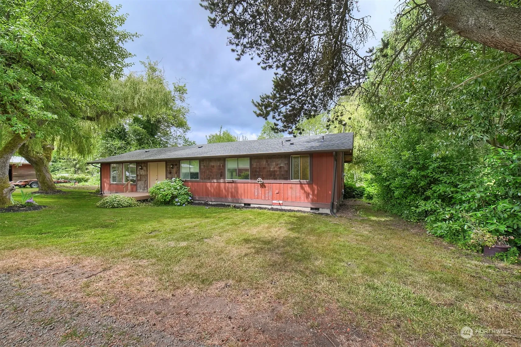 This 3 bedroom 1454 sq ft home with a layout that maximizes space and functionality. You’re welcomed with bright and airy living space which connects to living room, dining area and Kitchen. Stepping outside on over 2.91 acres leading down to the water edge. Garden area and plenty of room for outdoor entertainment. There is endless potential with your carport and shop area attached.