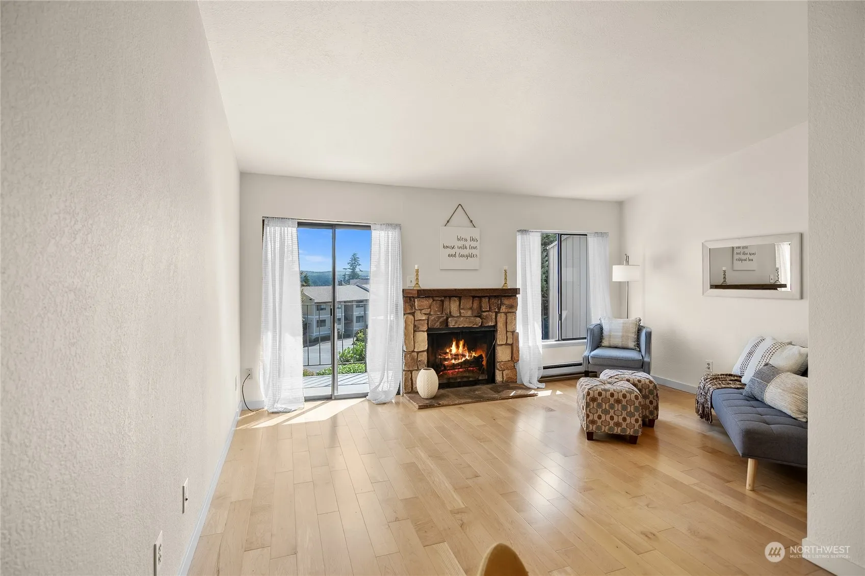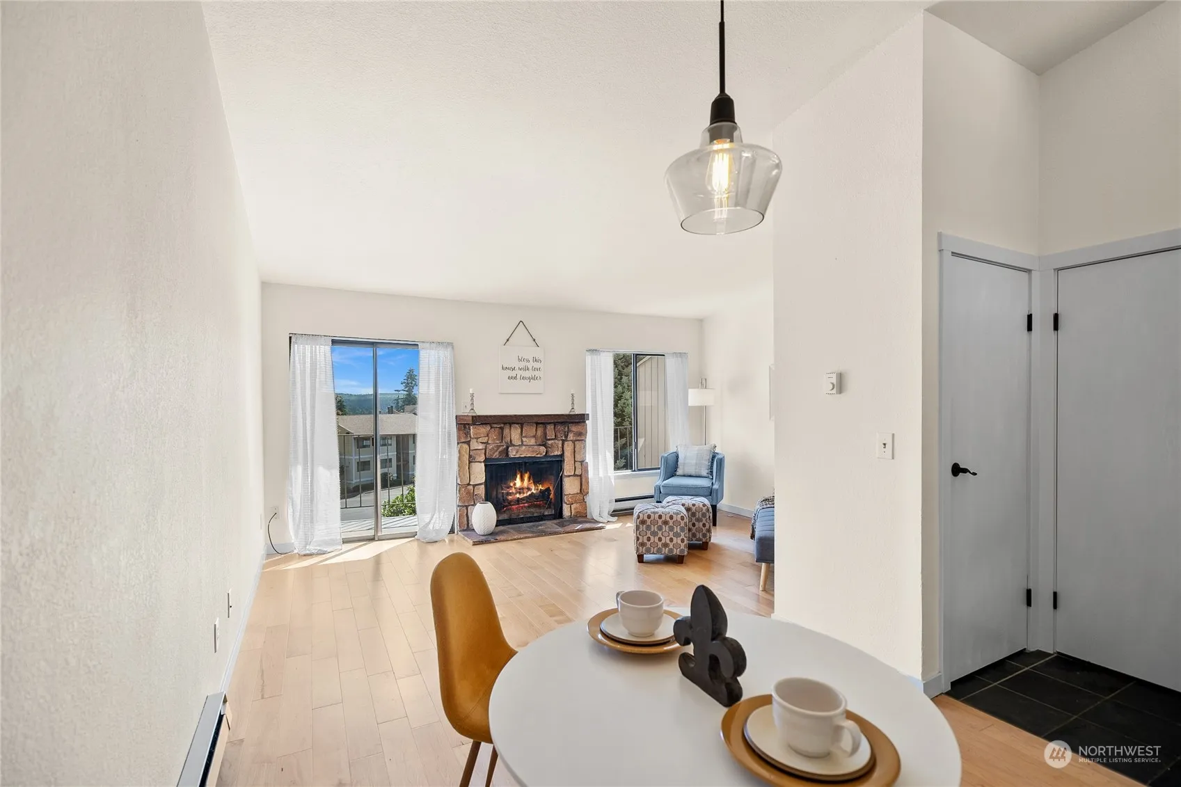 Discover the essence of urban charm in this inviting condo boasting a picturesque view from its lovely deck. This home is just a stones throw from downtown Kingston and the Kingston Ferry Terminal. Step inside to find airy vaulted ceilings that enhance the spacious feel of the living area, creating a perfect backdrop for relaxation or entertaining. Upstairs the kitchen is updated with sleek stainless steel appliances, dining space, 1/2 bath, a cozy fireplace, and the living room opens to a small deck. Downstairs you will find 2 bedrooms with a full bath laundry combo. With no rental cap, this property offers both a comfortable retreat and an excellent investment opportunity.