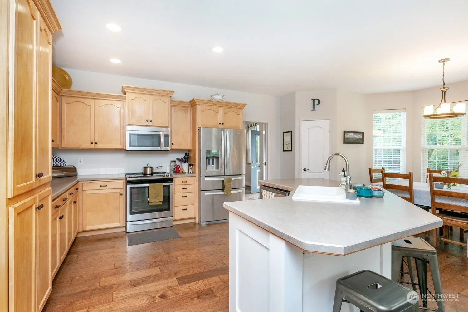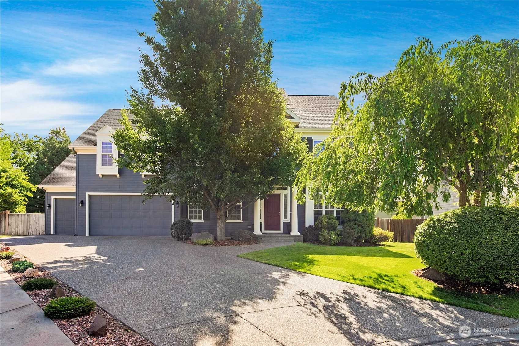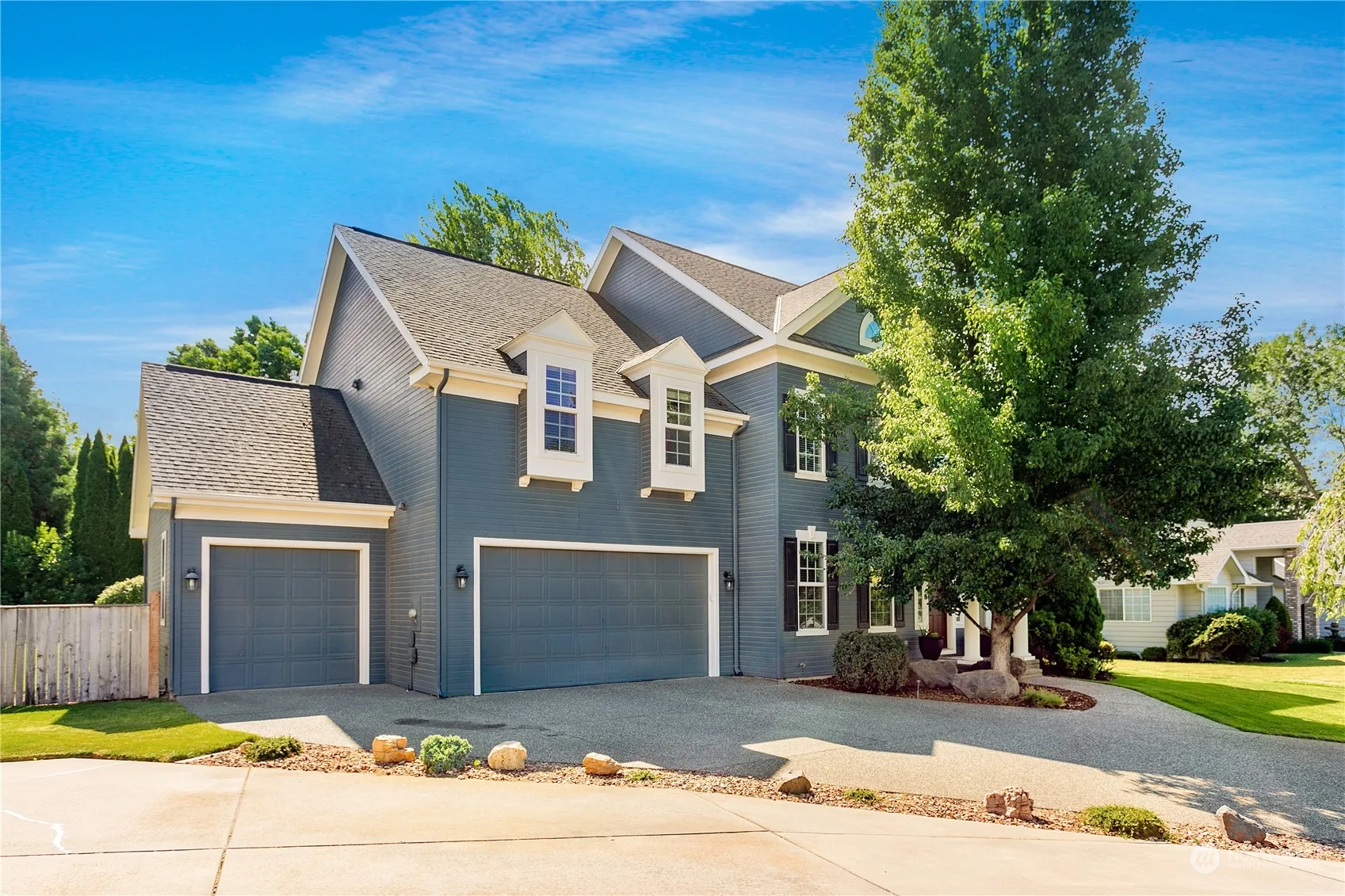 Nestled into a cul-du-sac in the Abbott’s Meadow neighborhood, this home is one block from a private neighborhood park and the adjacent Murr Sports Park. On either side of the vaulted entryway are an office and guest room. The open-concept kitchen, dining and living room features engineered cherry hardwood flooring and a cozy gas fireplace. The laundry room is conveniently located upstairs along with four large bedrooms with generous closets, plus a primary with en-suite bathroom, closet and flexible adjoined room. Ample built-in storage throughout the over-sized 3-car garage, mudroom, storage room and full-height 15×15′ attic space. The 0.34-acre lot showcases mature landscaping, irrigated raised garden beds, and a spacious 20×20′ patio.