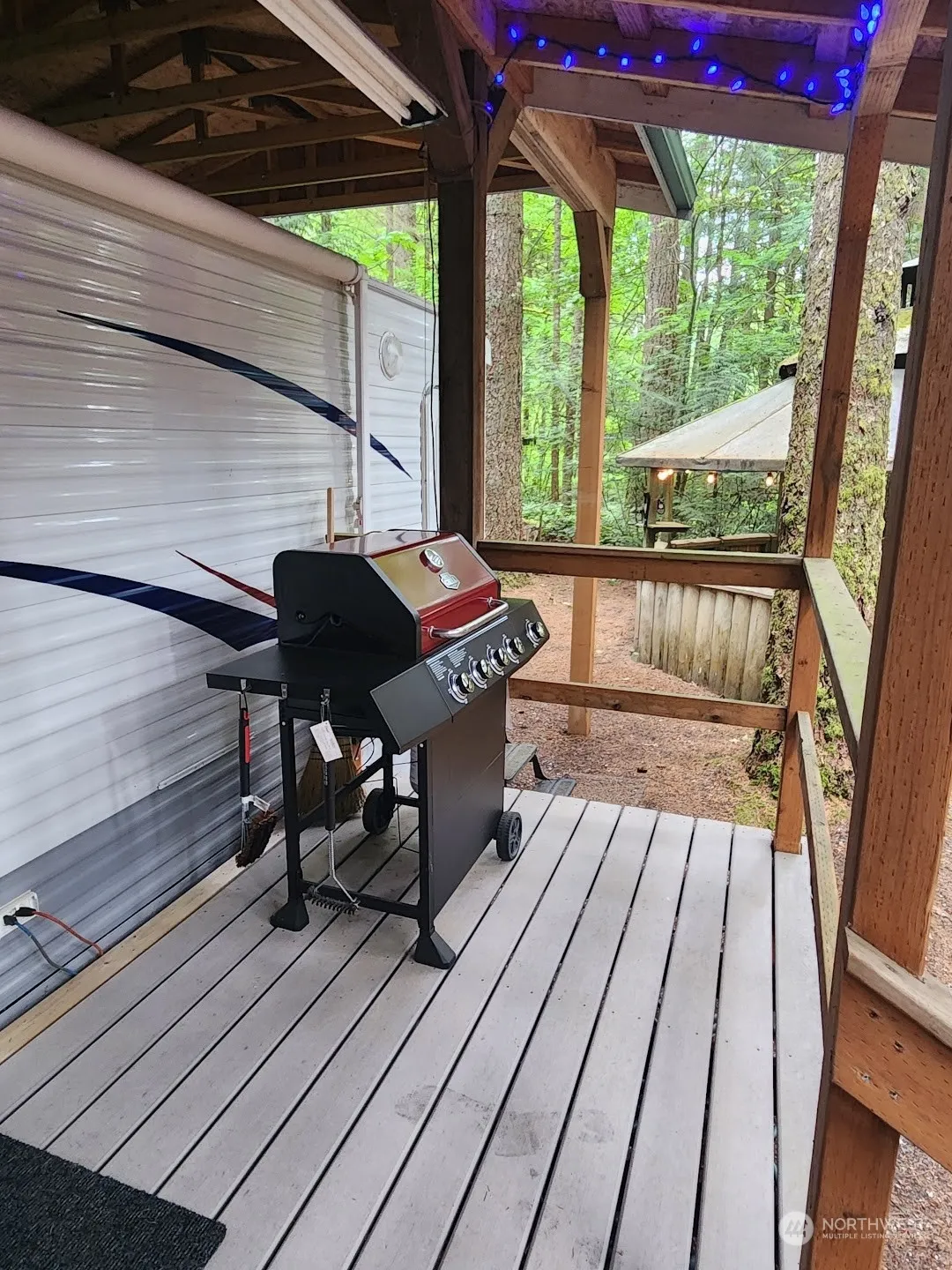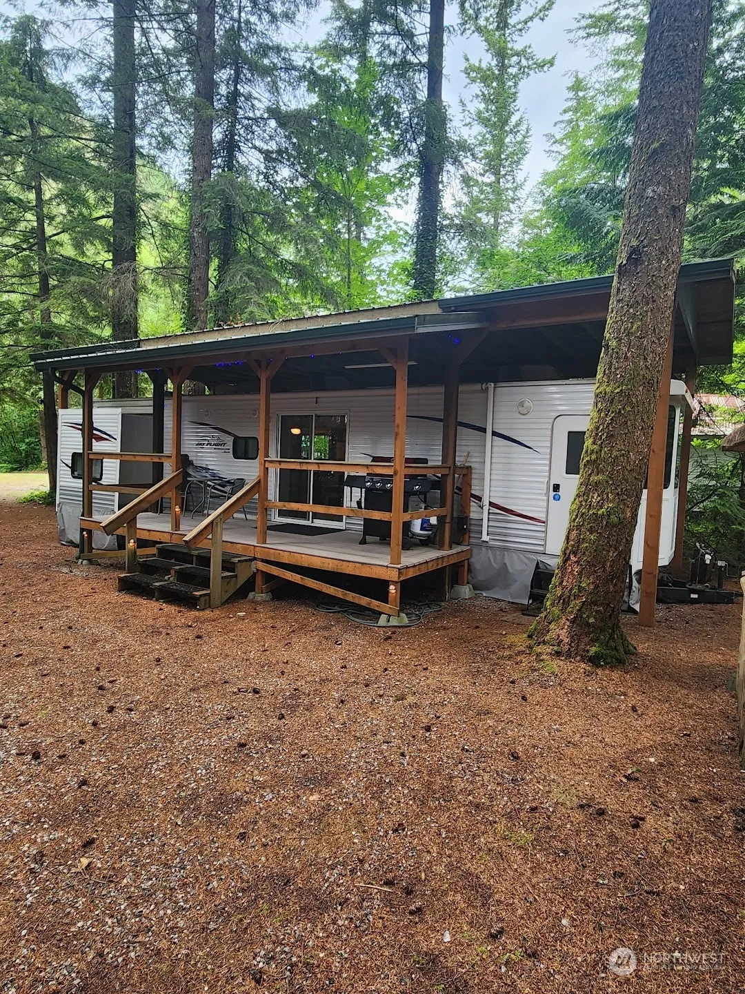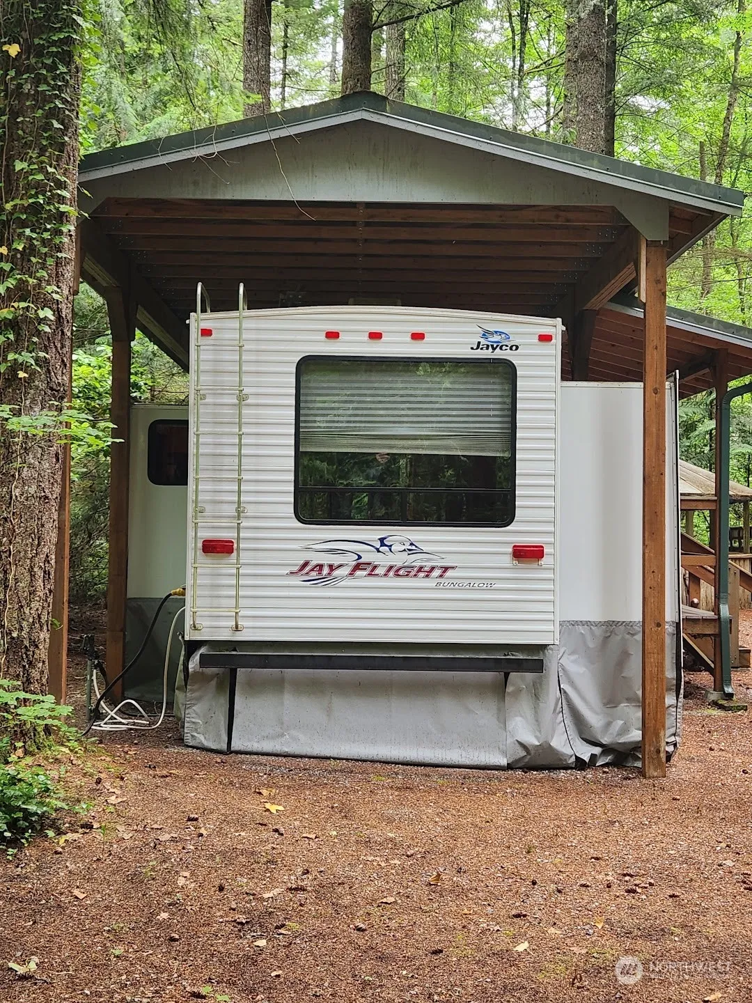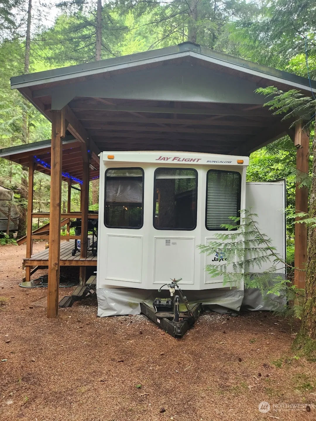 MUST SEE immaculate 2007 40′ Jayco Park Trailer on large, QUIET Div. 3 lot. The primary bedroom feels like a private retreat with a wall of windows that bring the outdoors in, while the second bedroom sleeps two adults and even more children! Slide outs make this already large trailer feel like home, and the permanent roof structure covers the trailer and a large deck for entertaining outside. A fenced gazebo serves as a covered firepit and a dog run, with two wood sheds nearby to keep you well stocked. The maintenance shed in back has many items and tools to help clean and maintain the property. Plenty of parking, and close to clubhouse, indoor pool, and all amenities. Come see why this lot puts the ‘Paradise’ in Campers Paradise!