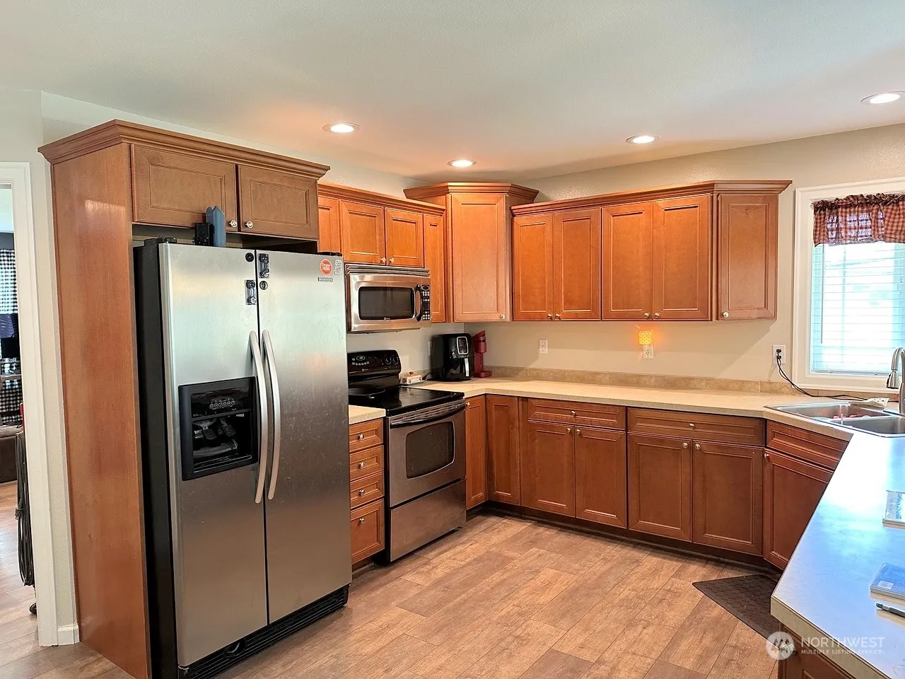 Looking for privacy in quiet neighborhood? This home is a must see! Spacious open floor plan with formal entry & easy access to the large fenced back yard, from the living & dining area! Kitchen has plenty of cabinets, a pantry and large counter/ bar with seating separating the chef from the formal dining area and great room. The large TV family room is an added bonus! Hallway leads to the perfect primary suite with walk-in closet & soaker tub, 2 guest bedrooms, guest bath & utility room! Two car garage & lots of parking! Call for an appointment!