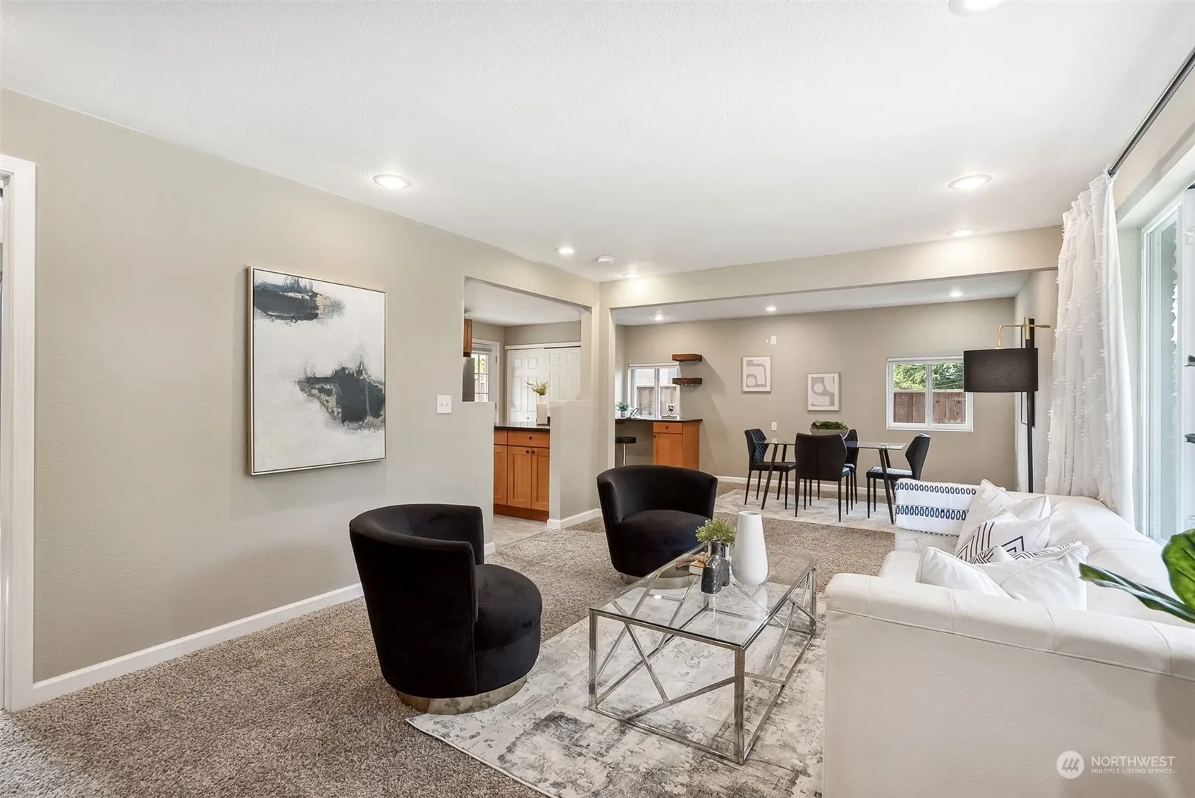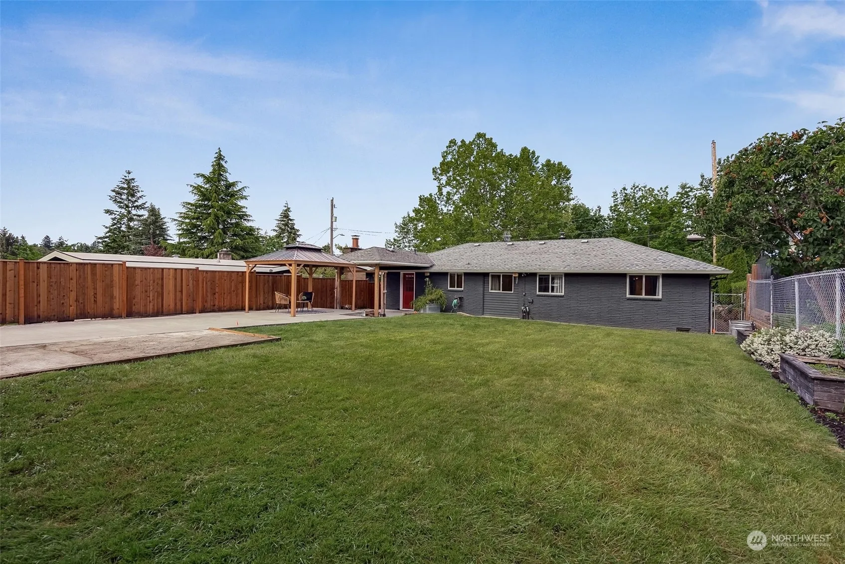 Charming Brick Rambler in Gregory Heights,minutes to Olde Burien. Full remodel 2015 + many cosmetic improvements since. Open floor plan living/dining room, w/wood stove in the center of home.Kitchen off living/dining features ample cupboard space, stainless appliances, granite countertops throughout Laundry off kitchen in closet Ample closet space throughout, 2 extra beds good for office. Primary suite boasts 2 closets, en suite bath with 2 sinks. Fenced backyard, awning off back door, gazebo.Poured patio + stone patio. Perfect space for hosting Sprinklers, space for RV or cars, detached shop/garage, come check out this lovely home! Home being listed below market value for quick sale, offers will be reviewed Monday July 15th