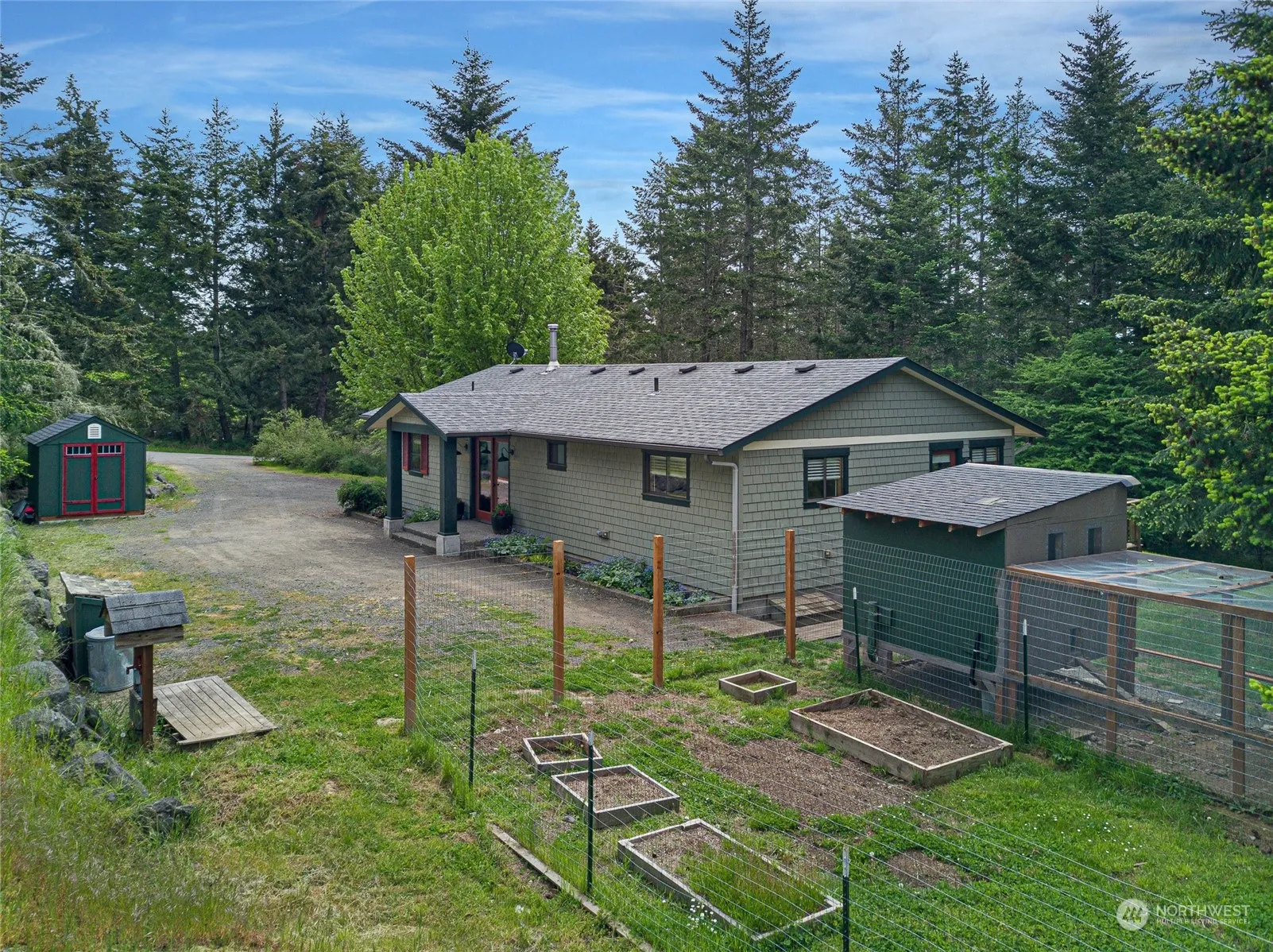 Charming island cottage privately situated on a lovely 1+ ac parcel located in desirable Hillview Terrace. Gardens and privacy in abundance; on the interior, cherry cabinetry, oak and slate floors, fir trim and stacked stone fireplace all combine to create a cozy and welcoming environ. Efficient ship-galley style kitchen opens to the light-filled dining and living room. Primary bedroom is ensuite with two additional bedrooms providing versatility for guests, home office, or hobby room. Enjoy entertaining and indoor-outdoor living on the generous 658sq ft Ipe wood deck, surrounded by professional landscaping. The home is smartly sited with excellent sunny exposure on a cul-de-sac, yet close to the amenities and waterfront of Friday Harbor.