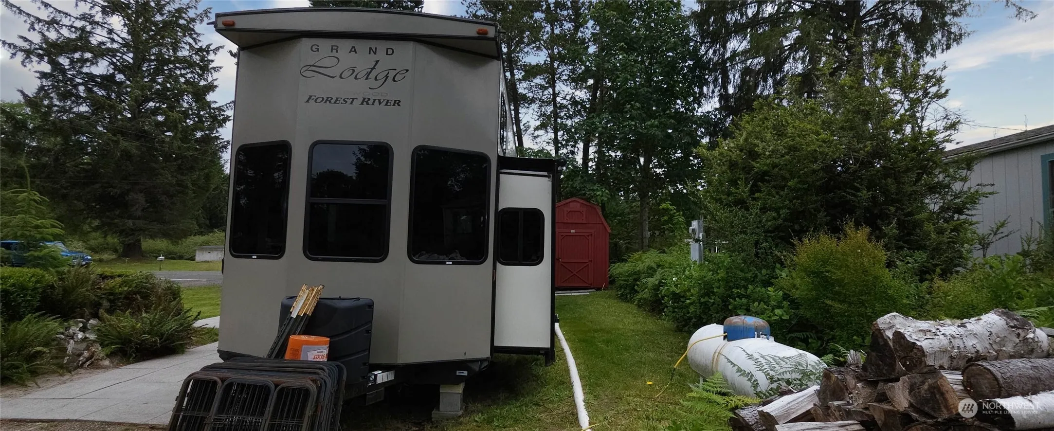Rare opportunity to own a fully equipped recreational oasis in the desirable Surfside community of Ocean Park, located right across the street from a vibrant park. This spacious lot features septic and water, and two 50-amp power services, accommodating multiple RVs. Included in the sale is a like-new 2019 Forest River Wildwood Grand Lodge DL park model RV (bought new $80k), offering comfortable living quarters and modern amenities including a three pop-outs. King bed suite and two sleeping lofts. Located in division 16 of Surfside, this property allows for 8 months of continuous living per year, 60-day winter permit also allowed. Division 16 also allows you to keep your RV on your lot year-round. Buyer to verify all. Old hickory Shed stays