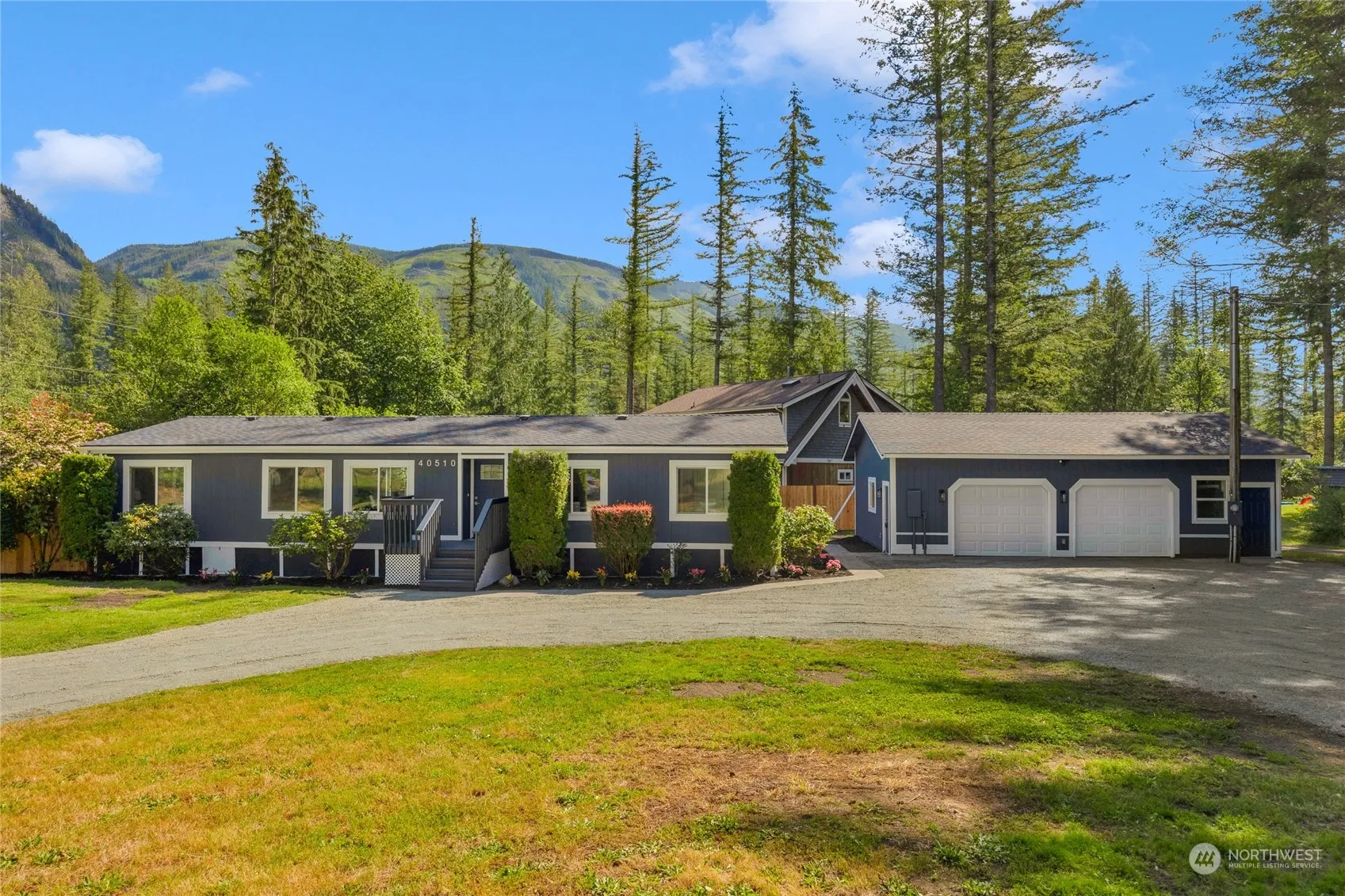 Must see this fully remodeled Goldbar charmer nestled on a private half acre. This stunning rambler features: 4 beds, 2 baths, new kitchen cabinets, quartz countertops, stainless steel appliances, open living concept, new waterproof floors, custom kitchen. New Roof, new crawl space, new Hot Water tank. Huge back deck / spacious outdoor area perfect for BBQing & entertaining. Situated on a landscaped lot with an extra large detached shop garage with additional office and storage. Nestled in the picturesque town of Gold Bar, this property boasts breathtaking mountain views that will leave you in awe. Well and septic serviced with new pump and 300 gallon cistern tank. Fully inspected & 1 year home warranty available.