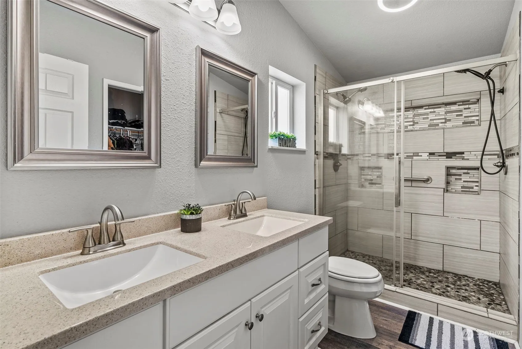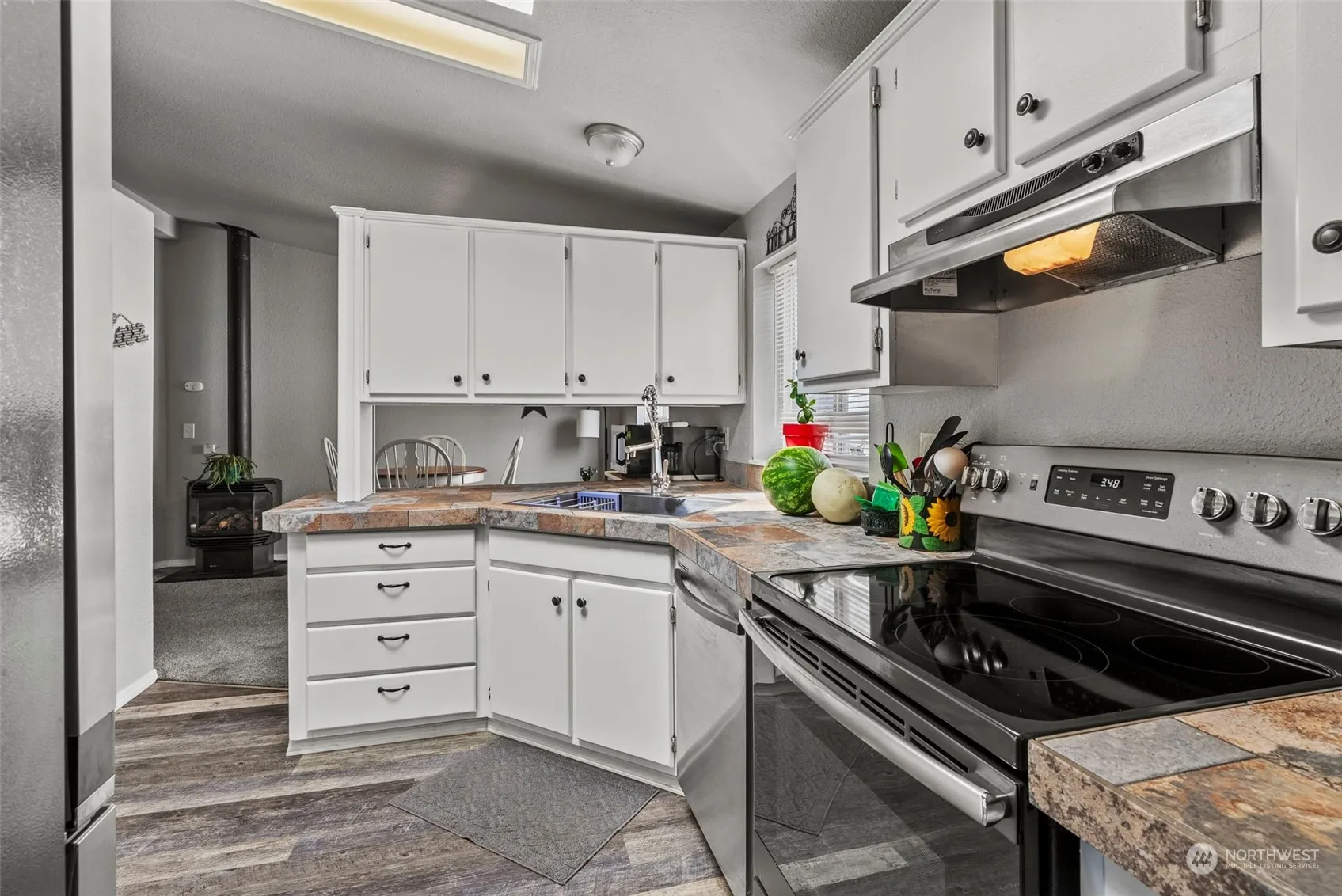 Discover your dream home with this charming 3-bedroom, 1.75-bath! Step into the spacious living room and cozy dining area. The kitchen boasts an inviting eating bar, perfect for casual meals. Retreat to the primary bedroom with its large walk-in closet and stunning tiled shower. The thoughtful floorplan separates the primary bedroom from the guest bedrooms. Enjoy the outdoors on the covered front porch or the private covered back deck. Additional features include a detached one-car garage/workshop and a mini-split air conditioning heat pump. This home is ideally situated, just minutes from I-5, conveniently located between Seattle and Portland. This is an absolute MUST-SEE!