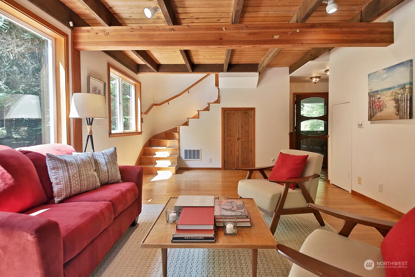 Experience tranquility among the evergreens at this charming retreat on 5± acres, less than a mile from downtown Langley. Beautiful wood trim, hardwood floors, and a wood stove add to the warmth of the home. A brand-new deck provides the ideal outdoor entertainment area. The spacious primary suite includes a ¾ bath, walk-in closet, and private deck. Vaulted ceilings and large windows flood the second story living area and loft with natural light. At days end relax and unwind in the custom sauna tucked away in the woods. Need more room… a heated outbuilding is perfect for a studio, shop, or storage. Plus, there’s plenty of room for gardens, a firepit and more. Easy stroll or bike ride to Langley shops, galleries, & restaurants.