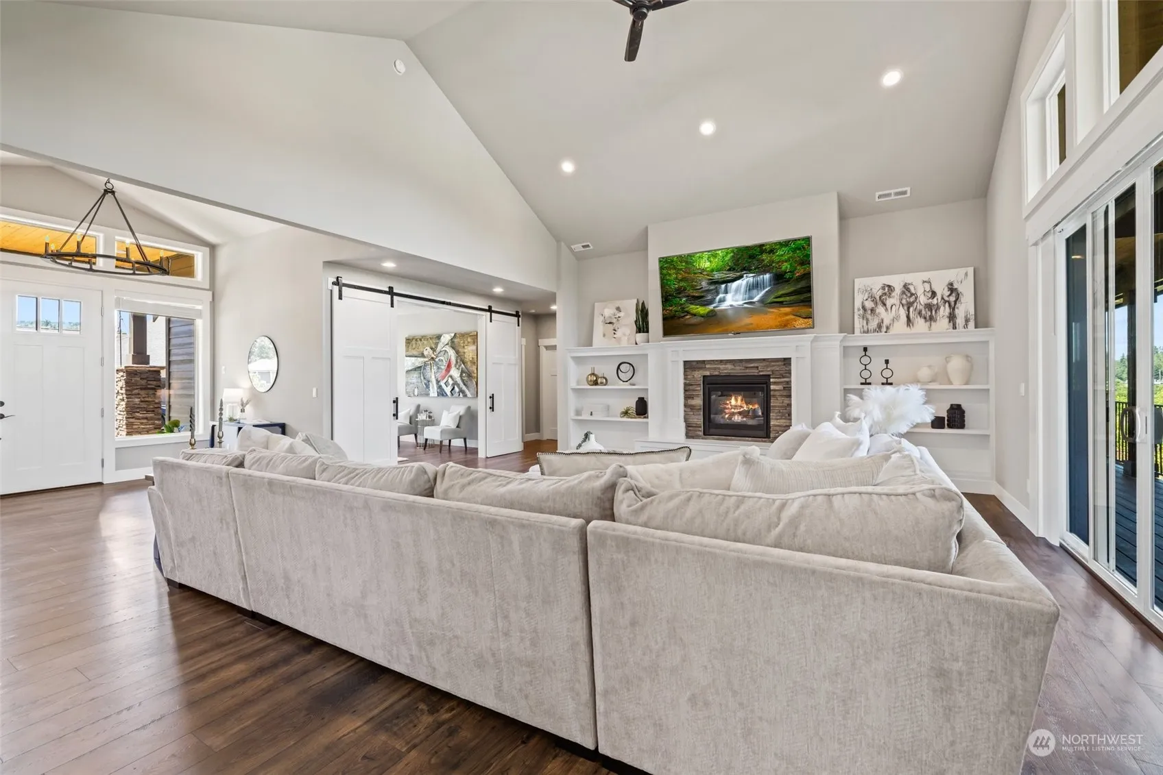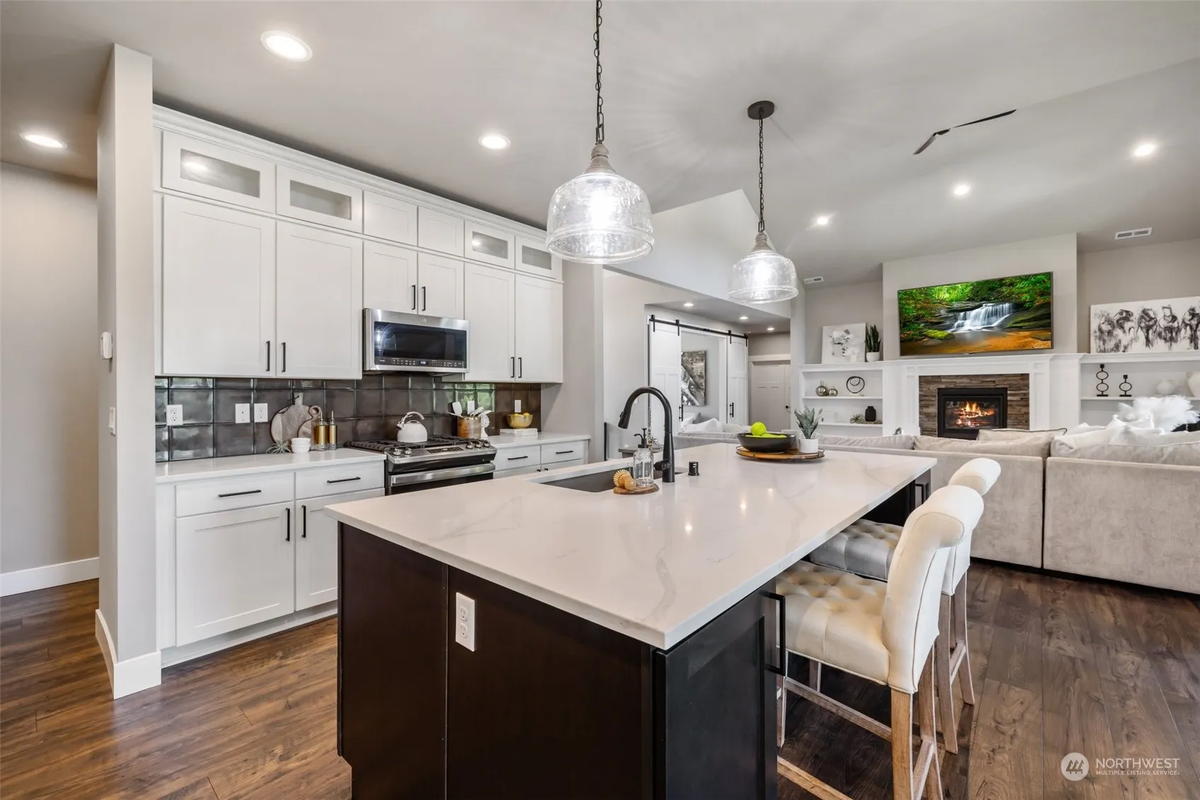 Discover your dream home nestled on a sprawling half-acre lot in an intimate community, where elegance meets rustic charm. Rambler features 4 bed, 3 bath, full-wrapped wood windows, 8’ barn doors, designer finishes, custom cabinetry, 10 glass doors and vaulted ceilings. Two primary suites with five-piece ensuites provide luxurious retreats. Enjoy an automated outdoor sprinkler system, outdoor water feature, recessed soffit lighting, huge covered veranda w/ trex decking featuring two outdoor fireplaces and jacuzzi, all within a fully fenced property that ensures privacy and security. Plenty of storage within home, attic space and basement. Walking distance to town and Mashel Falls.
